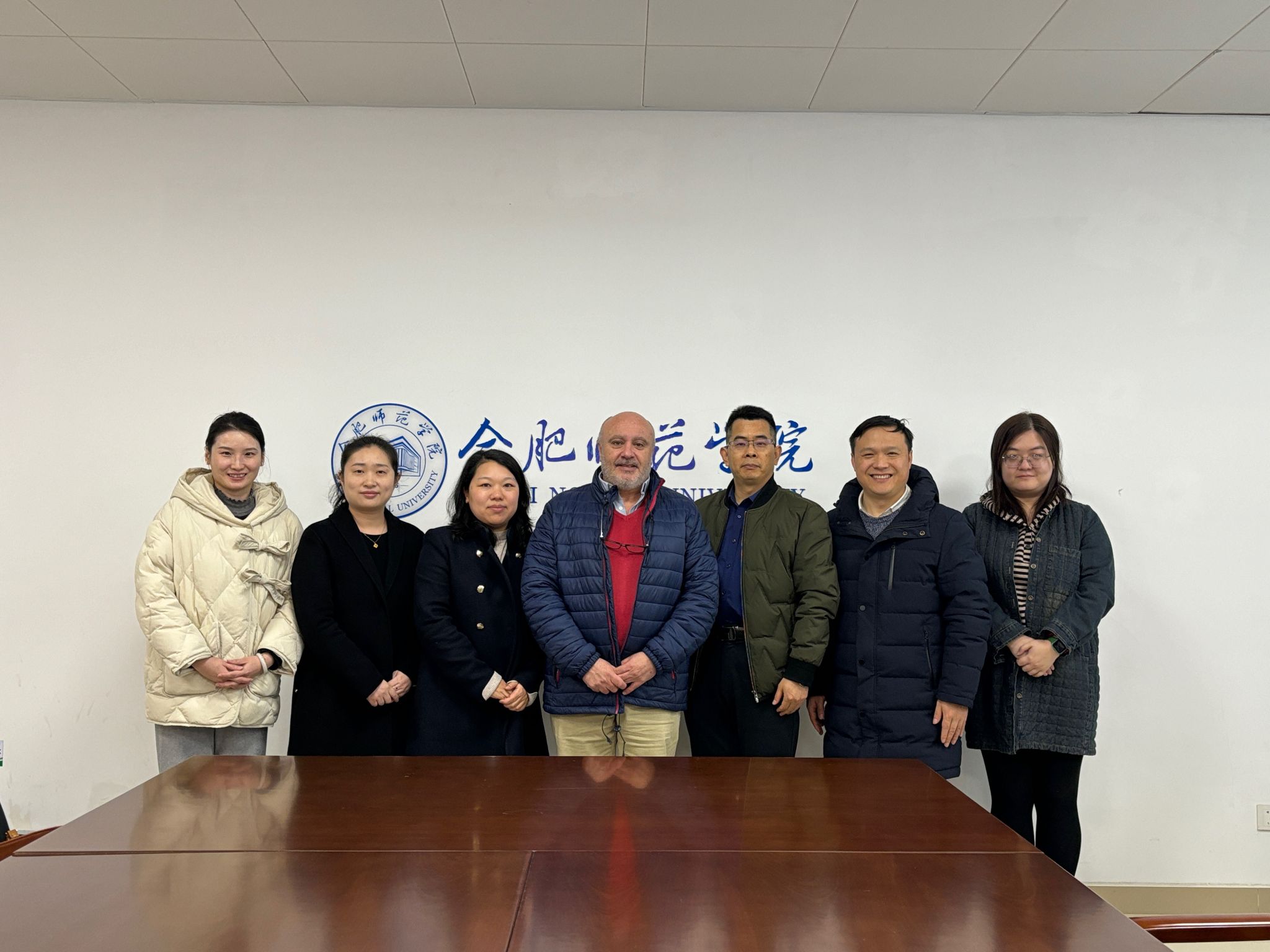 3月7日,西班牙内布里哈大学国际事务主任Javier Diaz和中国学术主任Lluvia Xu一行来我院访问交流。我院国际交流与合作处副处长蒋道华,外国语学院副院长吴礼敬,西班牙语系主任张照,西语专业教师代表叶芳菲、张弩,西语专业辅导员朱儒进、李超等在滨湖校区会议室接待了Diaz一行并进行了深入的交谈,会议由蒋道华主持。