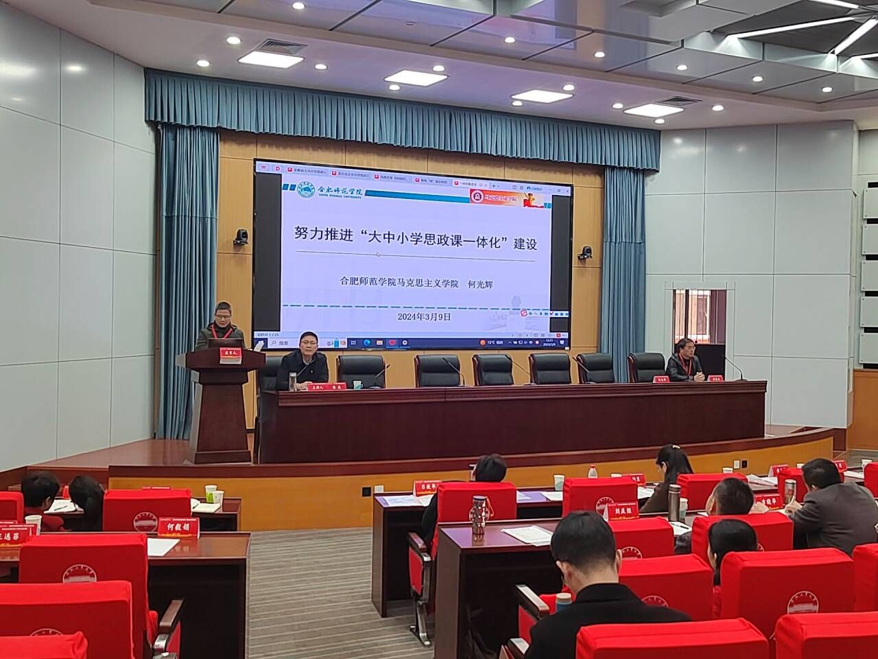 何光辉从三个方面汇报了beat365在“大中小学思政课一体化”建设中的探索。他指出,beat365唯一官方网站坚持问题导向和目标导向相结合,在推进一体化建设过程中,先后经过筹办一体化研究论坛、成立“大中小学思政课一体化备课联盟”、获批省级“大中小学思政课一体化共同体”建设单位三个发展阶段。每一个阶段的探索与实践,都有力地推动了学校思政课一体化进程,发挥了beat365在促进合肥地区思政课一体化建设中的引领带动作用。