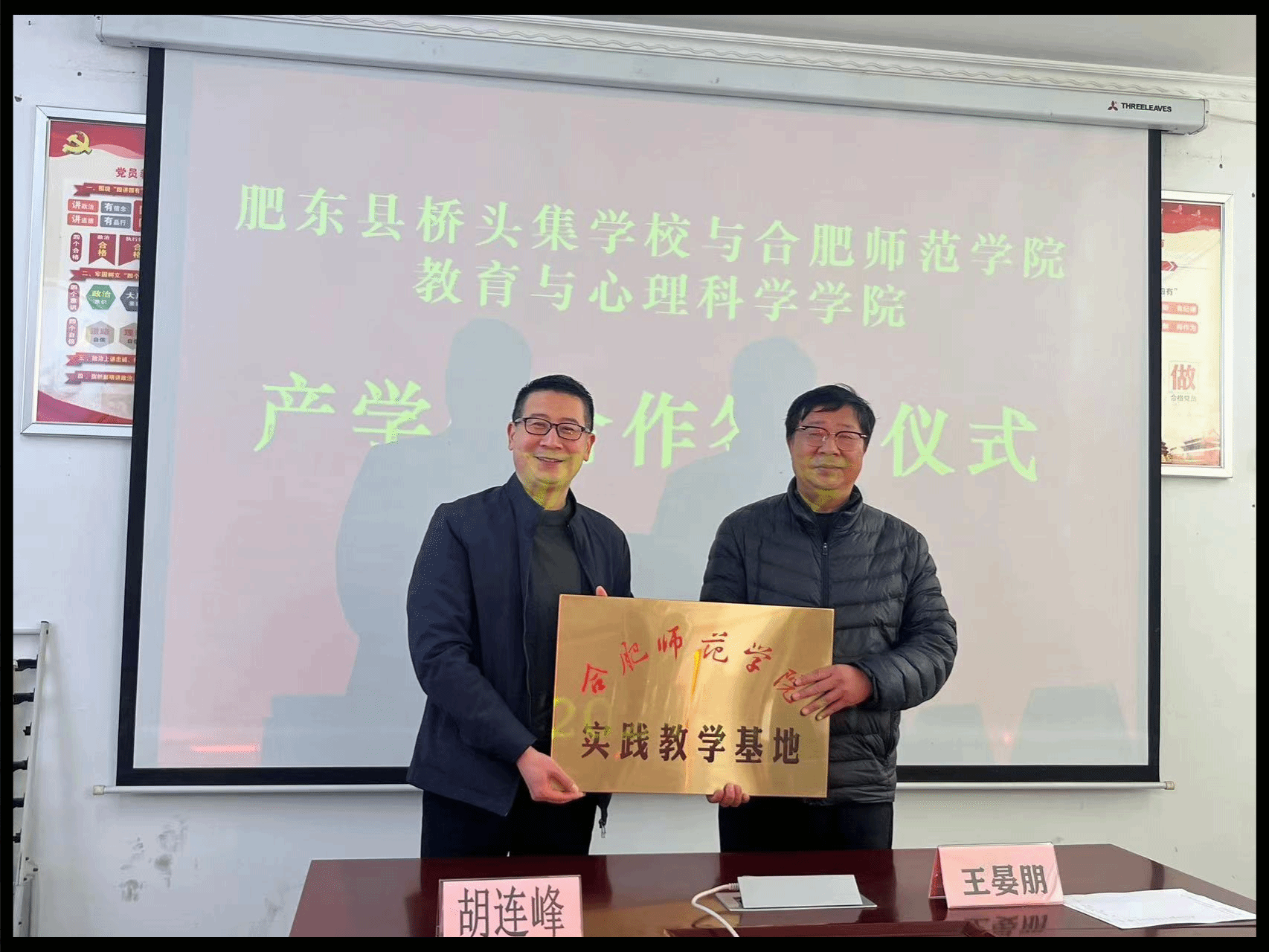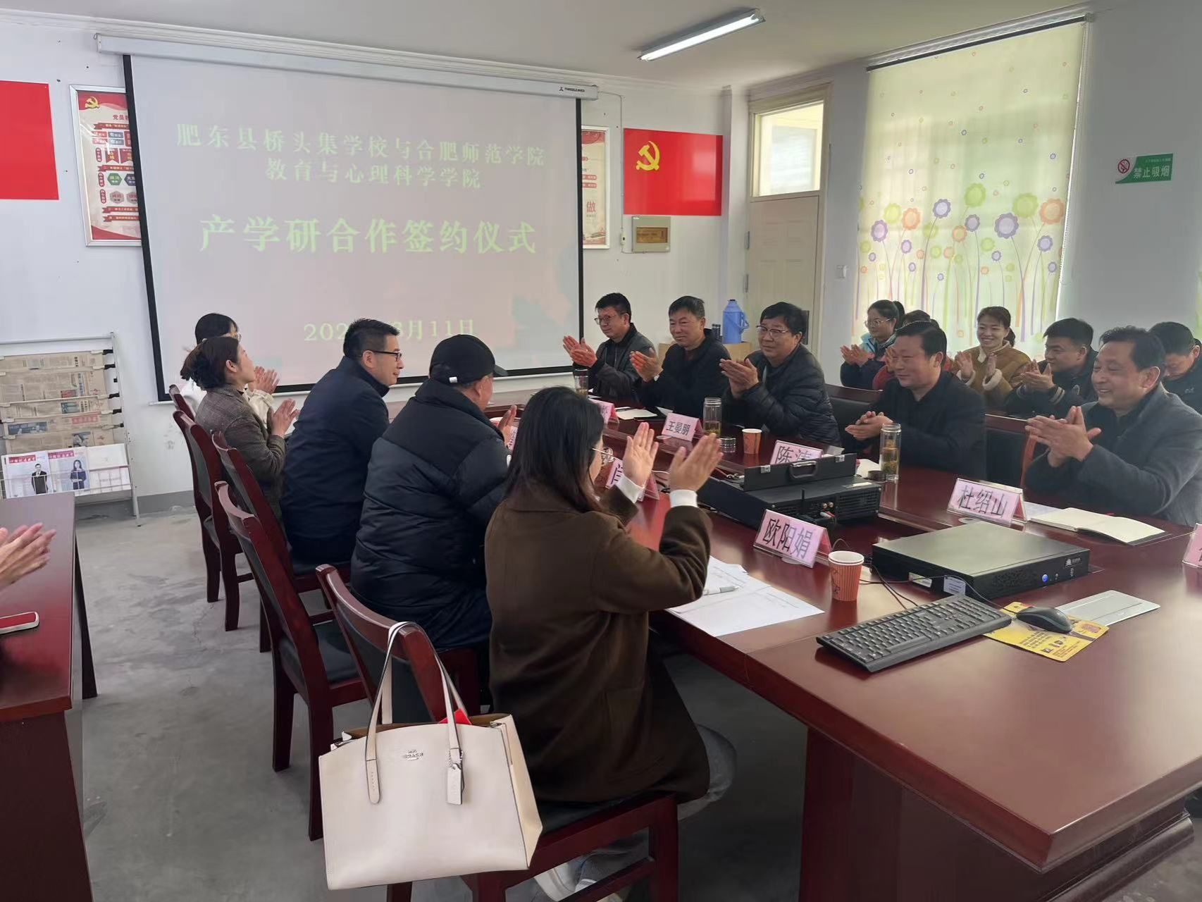 签约仪式圆满成功。教育与心理科学学院将进一步加强与肥东县桥头集学校的沟通合作,为学生搭建高质量的实践平台,提高学院教育教学质量及学生实践教学能力。(教育与心理科学学院:欧阳娟)