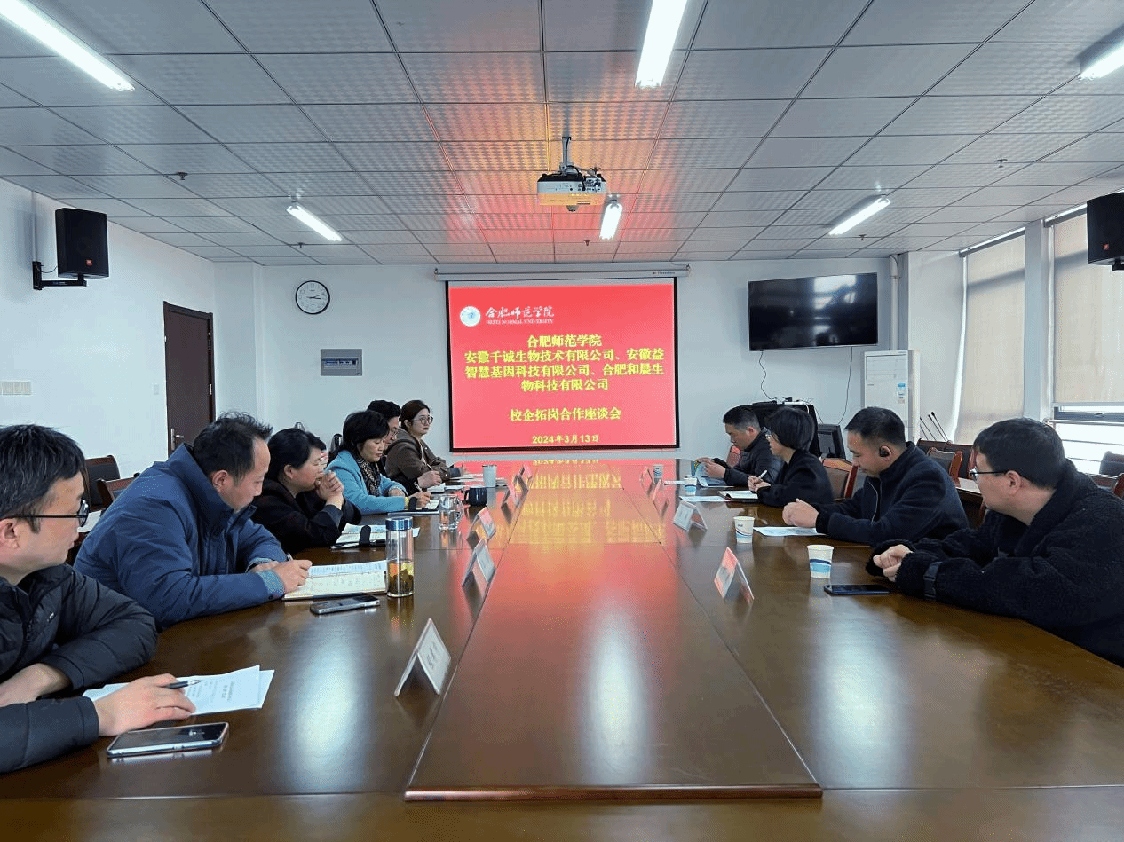 为进一步落实“访企拓岗促就业”专项行动,推进校企产教融合,加快推进2024届毕业生就业工作,3月13日下午生物与食品工程学院邀请安徽千诚生物技术有限公司、安徽益智慧基因科技有限公司、合肥和晨生物科技有限公司来校举行合作洽谈会。生物与食品工程学院党委书记郭桃芬、副院长朱桂兰、党委副书记马喆、副院长王伟、食品质量与安全系主任程孝中、毕业班辅导员黄洁参加座谈,会议由马喆主持。