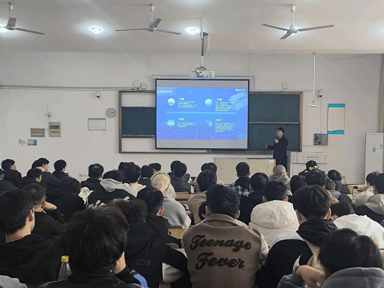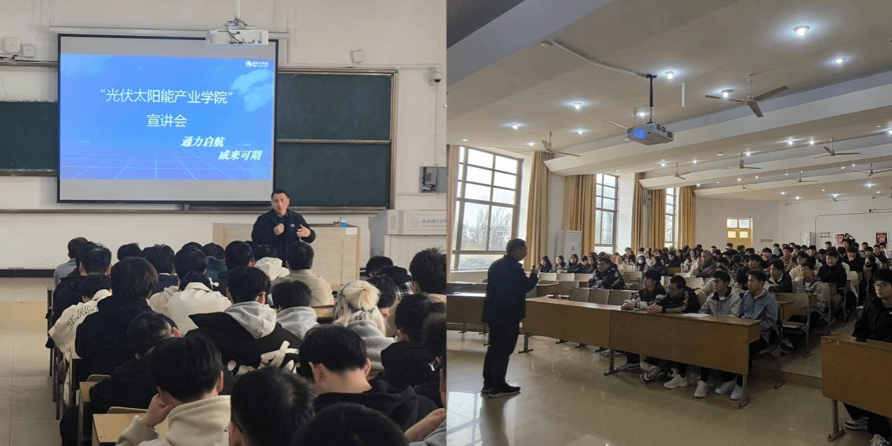 通威太阳能人力资源部经理李存东向2021级学生详细介绍了通威太阳能公司的产业布局、市场发展、制度环境和人才培养等相关情况。同时重点围绕培养目标、课程安排和实习就业等方面解答“光伏太阳能”产业学院联合培养的相关内容。