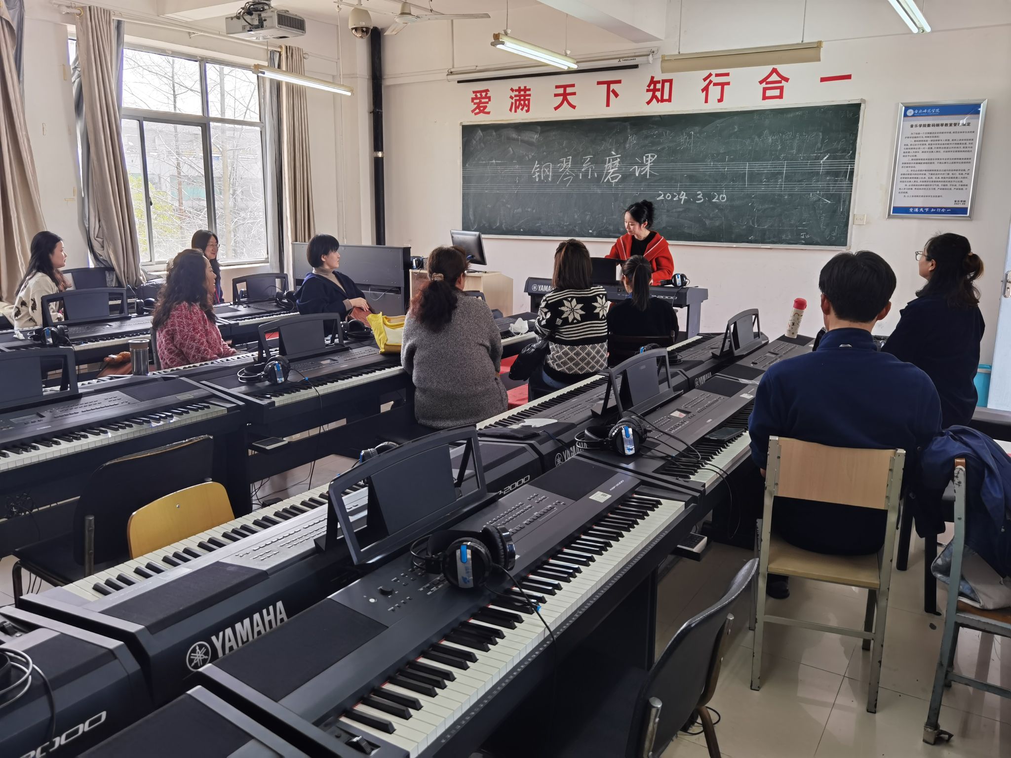 为贯彻落实学校新一轮本科教育教学审核评估评建工作总体部署要求,切实提升课堂教学质量,打造优质课堂,促进教师教学能力提升,自2023年10月起,音乐学院就部署了系列教研活动,本次系列教研活动分为三个环节,一是课程标准修订,二是教学设计研讨,三是无生授课与研课。在课程标准修订环节,音乐学院分四个教研室,分别对上一版课程标准进行了修订,本次课程标准修订涉及音乐学和音乐表演两个专业共112门课程,在全体教师的共同参与下,课程标准的修订工作已经进入专家审核阶段;在教学设计研讨环节,学院四个教研室分别对理论、声乐、钢琴、器乐等专业核心课程、专业基础课程、专业拓展类课程、教师教育类课程、行业课程进行了教学设计层面的展示与研讨,各项工作正在有序推进;在无生授课与研课环节,各教研室分别采取无生授课和集体讨论的形式对课程设计、教学方法、教学内容、课程思政等关键项进行深入的交流和探讨。3月20日,钢琴教研室开展专业课程集中研讨活动,活动由教研室主任杜烜主持,教研室全体教师参与。