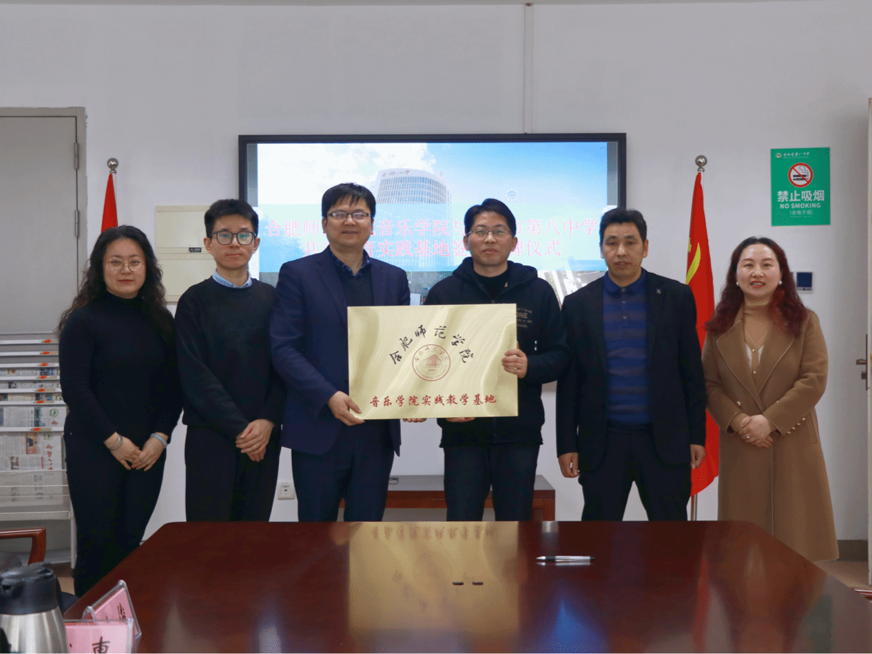 3月26日下午,在合肥市第八中学举办了beat365唯一官方网站音乐学院、合肥市第八中学实践教学基地挂牌仪式。音乐学院院长李劲松、党委副书记宋辉、实践实训中心主任陆伟与合肥市第八中学副校长余俊、教务处主任张少庸、艺术学科主任杨欢欢等人共同出席了挂牌仪式。