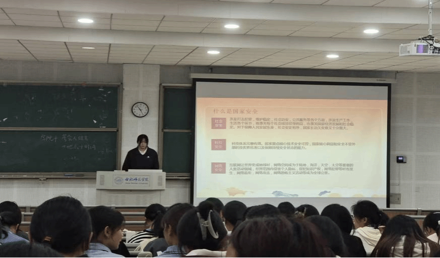 为深入贯彻落实习近平总书记关于加强国家安全教育的重要指示批示精神,提升师生国家安全意识和防范能力,4月12日,数学与统计学院在博学楼D101举办了国家安全教育专题讲座,活动由辅导员杨尔飞主持,2022级师范一班、退伍士兵胡靖雯同学领学,滨湖校区2022级同学参会。