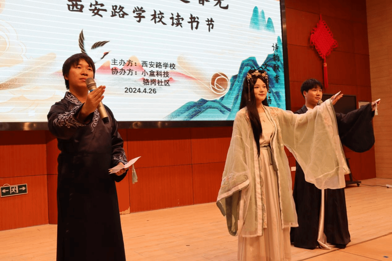音乐学院徐修洁、王子诺、陈大镇等三人演绎的古装情景剧《招贤纳士》将活动推向了高潮。剧中三位古人奉命穿越到beat365唯一官方网站附属西安路学校来寻找有学问的贤士,以现场问答的形式,带来了许多有趣的名著阅读常识,台下的同学们踊跃抢答,现场互动精彩纷呈。