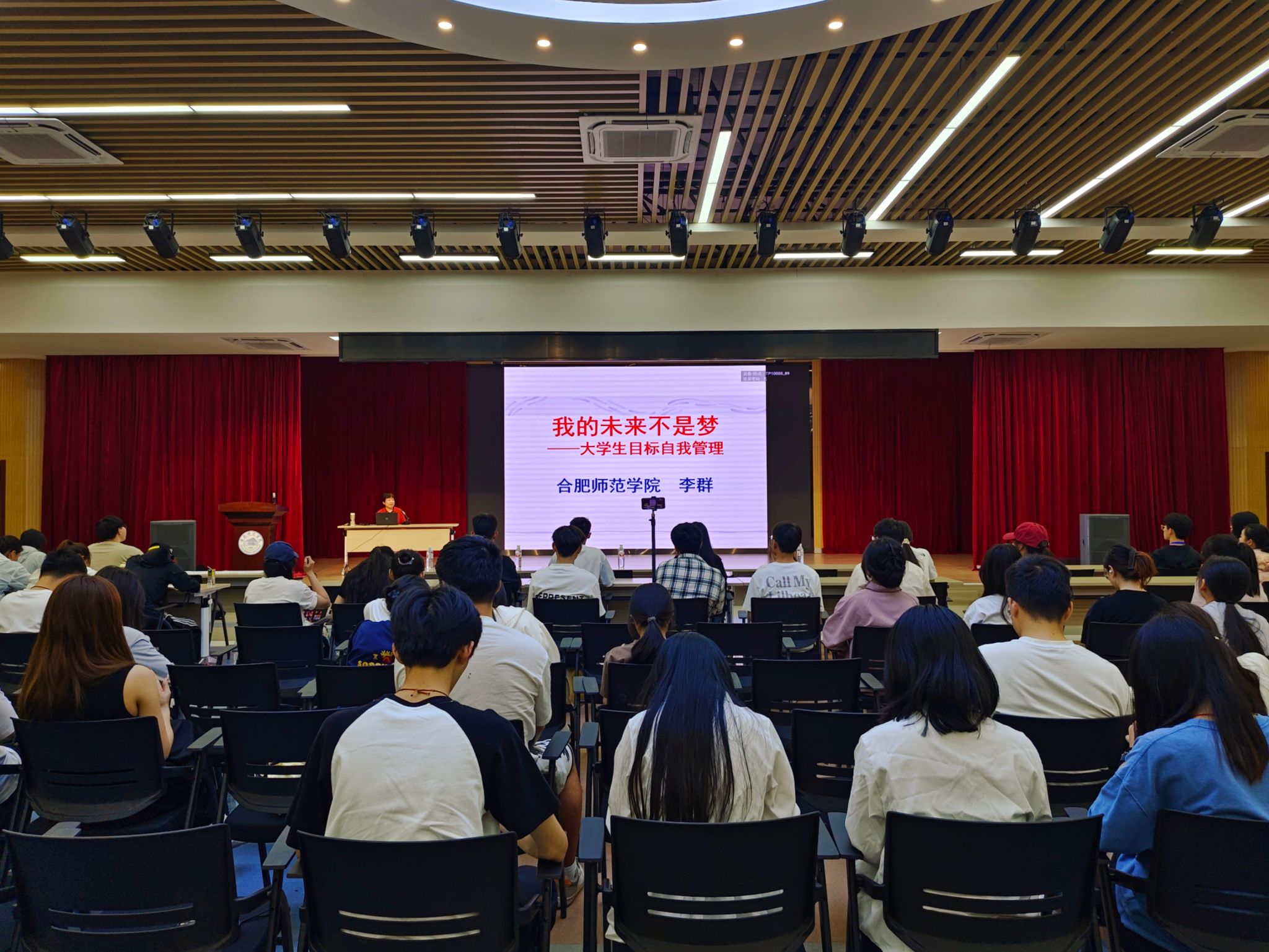 为深入学习贯彻习近平总书记五四重要寄语精神,巩固拓展团员和青年主题教育成果,充分发挥老专家、老教授在育人工作中的积极作用,5月15日中午,院团委、学生工作部联合学院关工委,邀请教育与心理科学学院原院长李群教授在锦绣校区大学生活动中心举办主题为“我的未来不是梦——大学生目标的自我管理”的专题讲座。第十四期青年马克思主义者培训工程、第四期“青春学习营”、2024年春季学生会工作人员全员培训班学员参加讲座(滨湖校区学员在线上会场参会)。