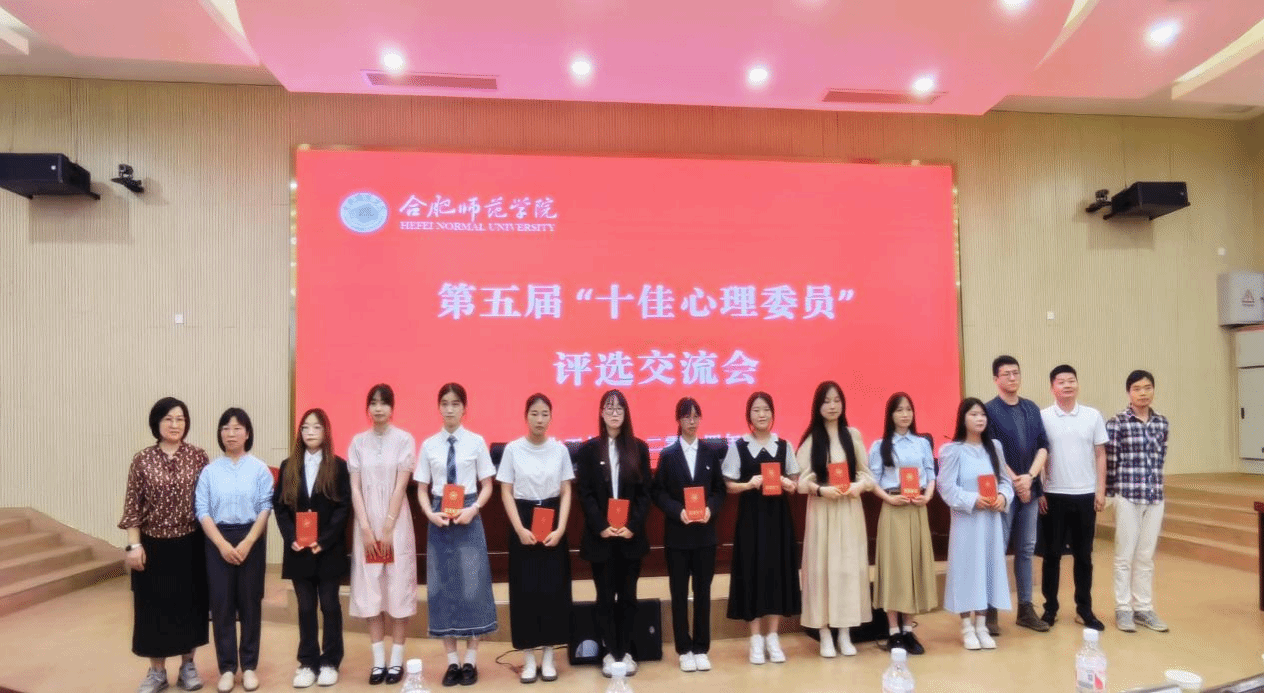 经评委评分,外国语学院张洁、物理与材料工程学院唐悦、文学院刘笑薇、教育与心理科学学院裴帆、经济与管理学院水梦婷、音乐学院葛文静、化学与制药工程学院马欣月、电子信息与集成电路学院王仁雯、马克思主义学院何莞竹、生物与食品工程学院曹苒然10名同学被评选为第五届“十佳心理委员”。