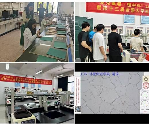 化学与制药工程学院首次参加省大学生金相大赛,能取得这样的成绩十分不易。为培养复合型人才,提升学生的动手能力,凸显理工科教学的实践应用性,学院领导积极筹划教学改革,关注竞赛的培育和设备的购置。今年4月底相关设备到位后,姚成立、方伟光、袁颐进三位老师开始组织学生练习、准备。因为第一次准备,师生对金相比赛都全无经验,在练习中遇到了各种各样的问题。为解决这些问题,师生通过查阅文献资料、网络视频,学习金相实验基础知识,摸索实验方法;邀请外校专家来现场讲解比赛流程,解读评分细则,加深对比赛的理解;注重练习过程中的经验总结,逐步优化制样技术。
