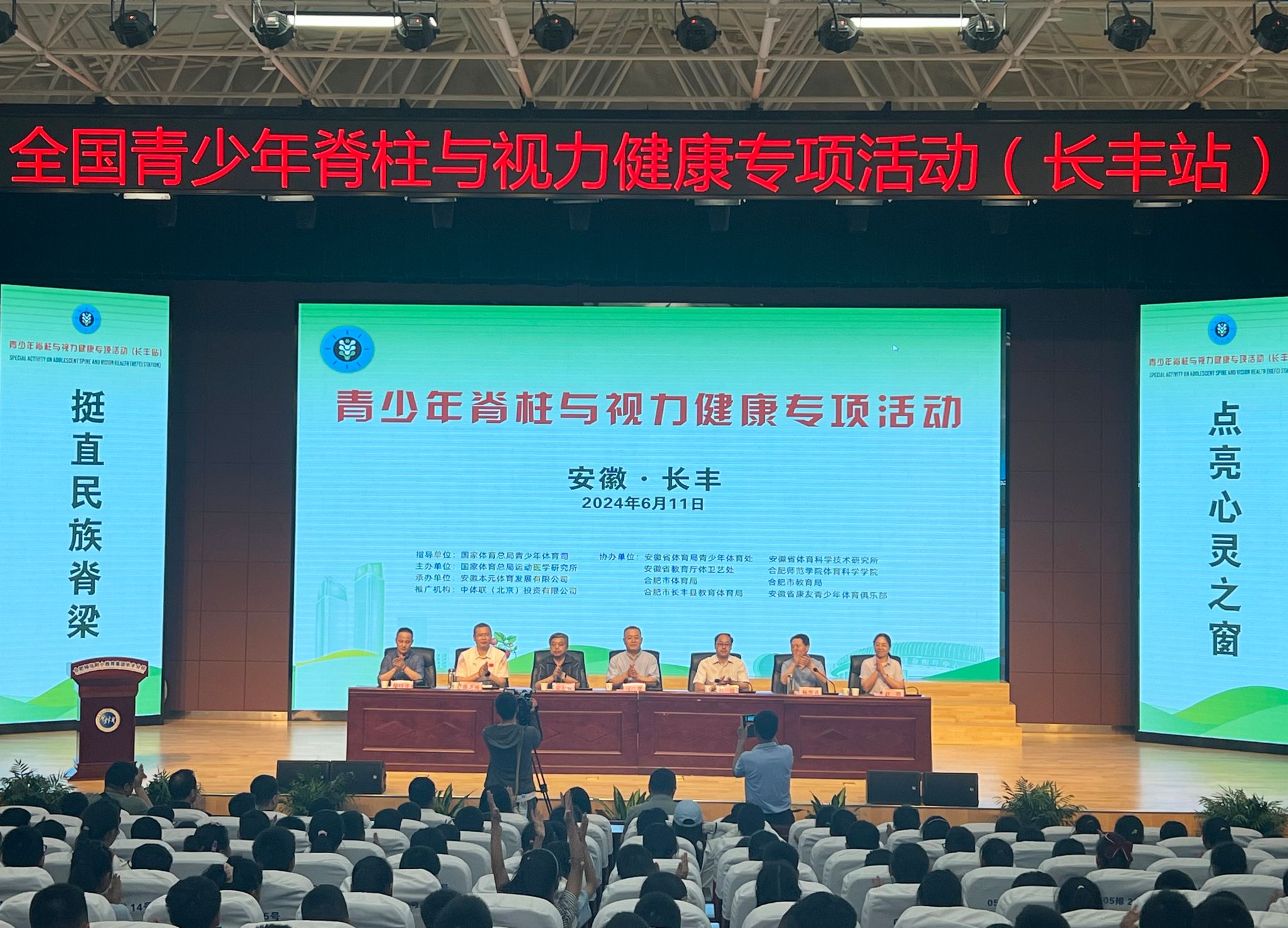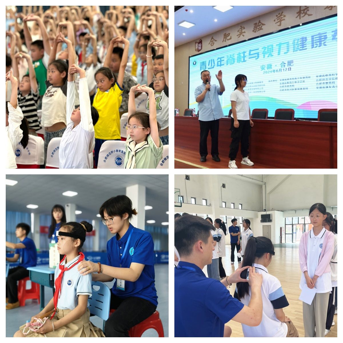 6月11日-13日,由国家体育总局青少年体育司指导,国家体育总局运动医学研究所主办,beat365唯一官方网站体育科学学院与安徽省体育局青少年体育处、安徽省体育科学技术研究所、安徽省教育厅体卫艺处协办的全国青少年脊柱与视力健康专项活动分别在合肥师范附小长丰分校和合肥实验学校西宁路校区开展。
