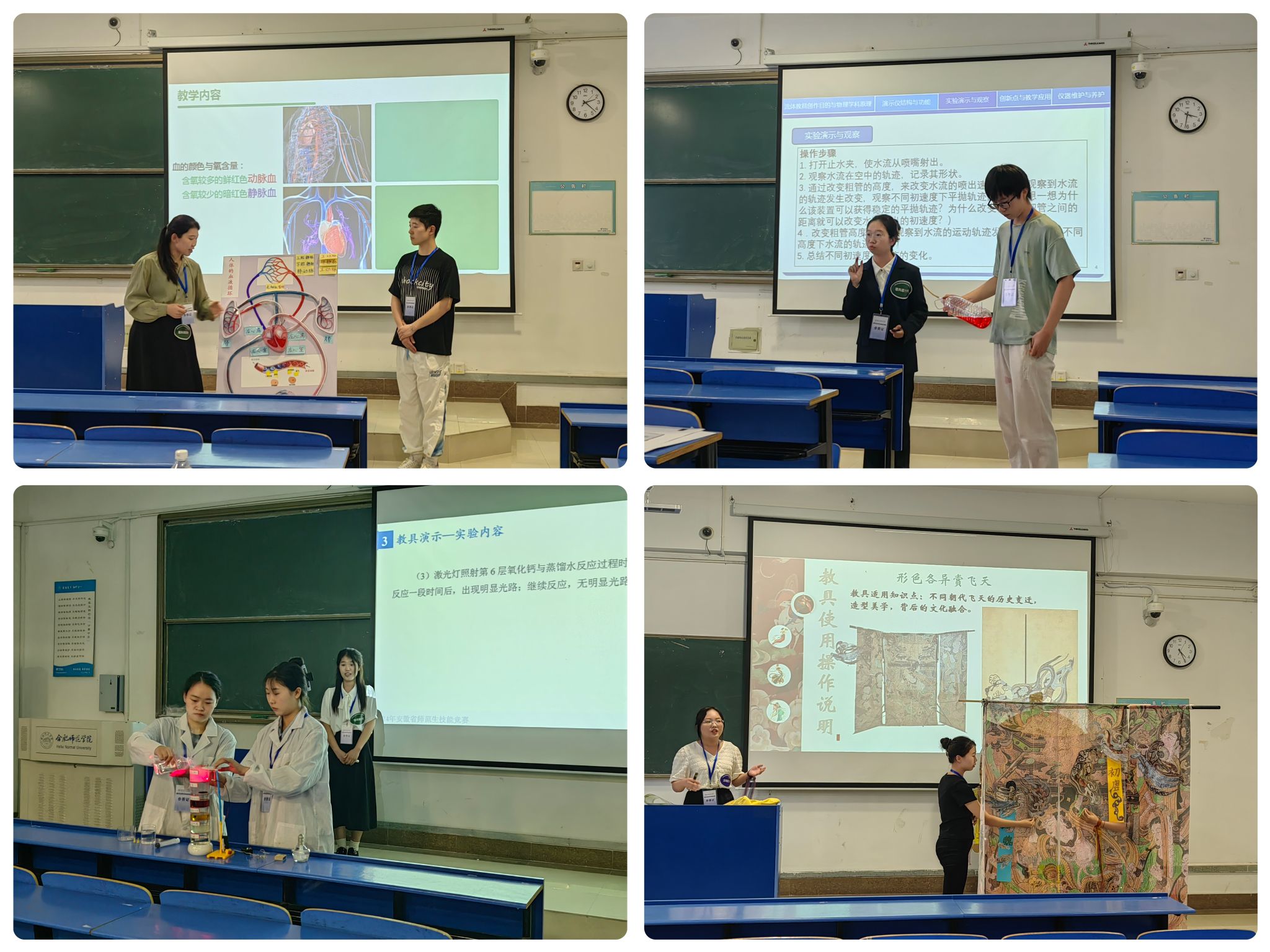 为进一步提高beat365师范生的专业技能和科学素养,培养学生的创新精神和实践能力,鼓励学生围绕学科教学和实习实践活动内容制作教具,切实提升师范生教学技能,6月19日下午在逸夫楼教师技能训练中心举办了2024年beat365唯一官方网站师范生教具制作竞赛。