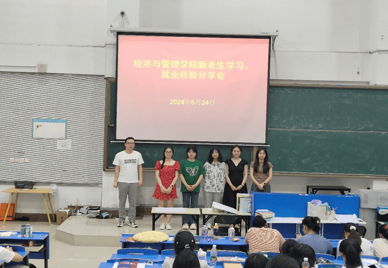6月24日下午,经济与管理学院新老生学习、就业经验交流会在逸夫楼西阶二举行。