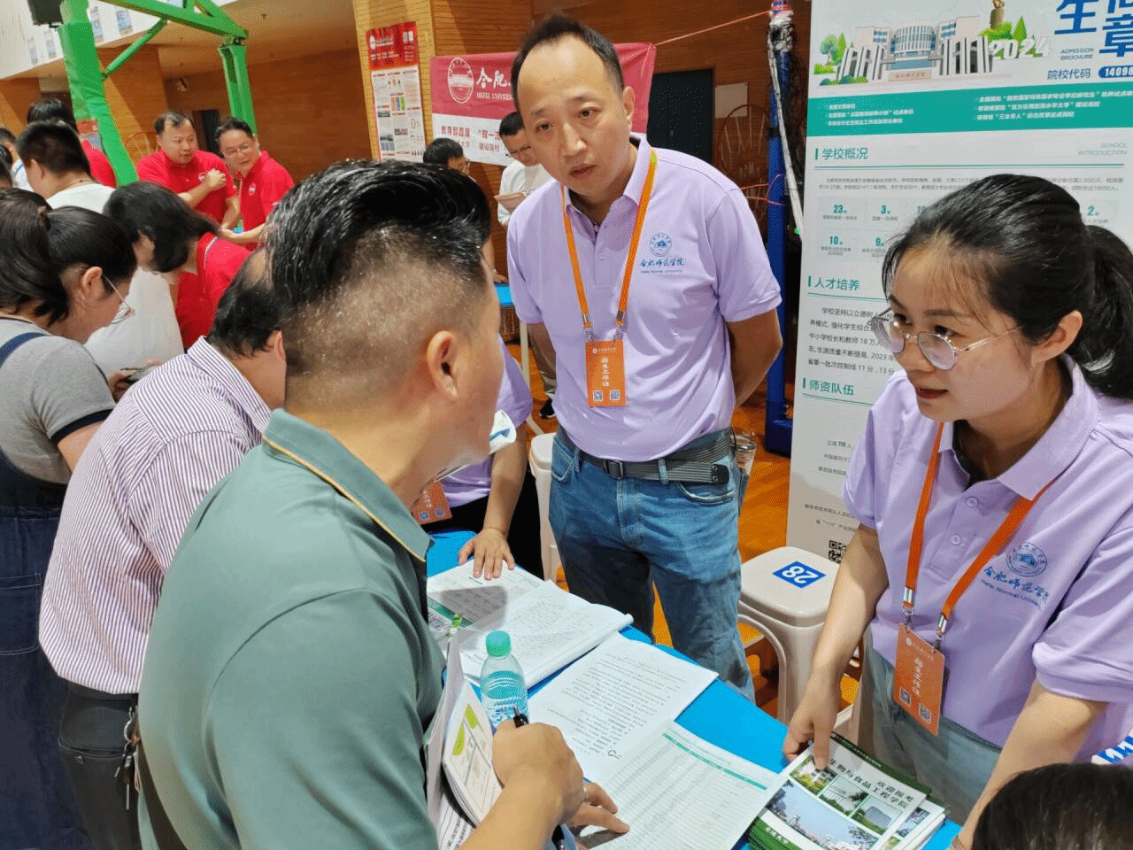 6月26日至6月27日,在学院院长朱桂兰和副院长王伟的带领下,由16位教师组成招生宣传工作小组,分别赴合肥四中、合肥七中、合肥十中、霍邱一中、霍邱二中、铜陵一中和铜陵中学等学校开展现场招生宣传活动,为考生家长提供了高水平和高质量的招生咨询服务。