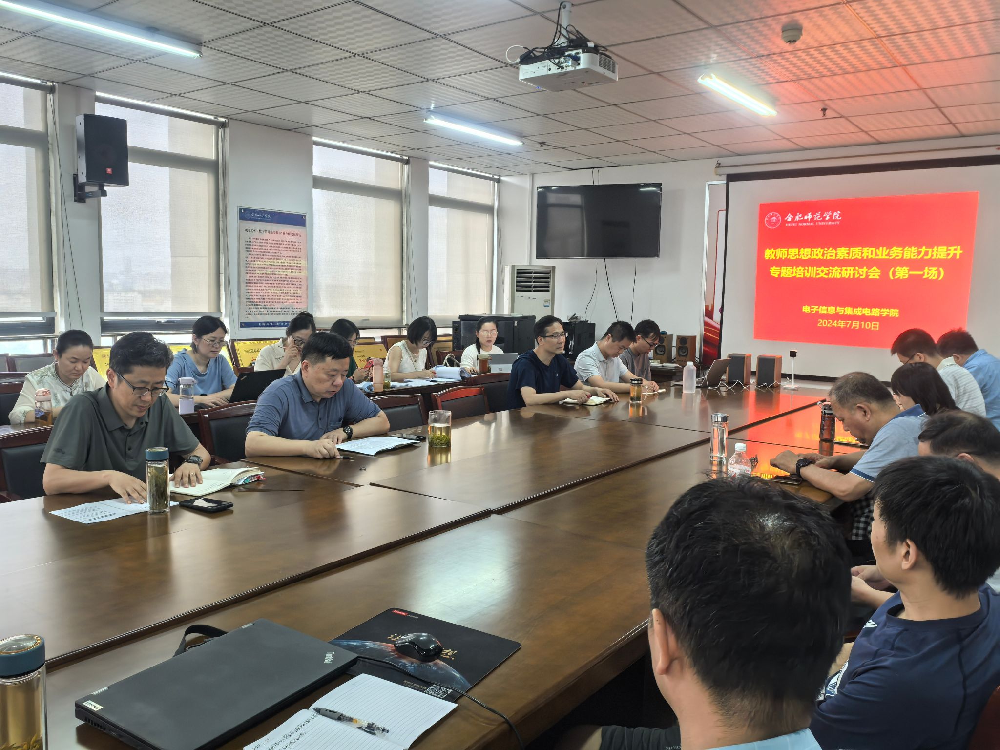 7月10日—11日,根据学校教师思想政治素质和业务能力提升专题培训工作安排,电子信息与集成电路学院积极组织全体围绕培训主题,开展了2场交流研讨活动,学院党政班子、全体教职工参会,会议由党委副书记、院长张忠祥主持。