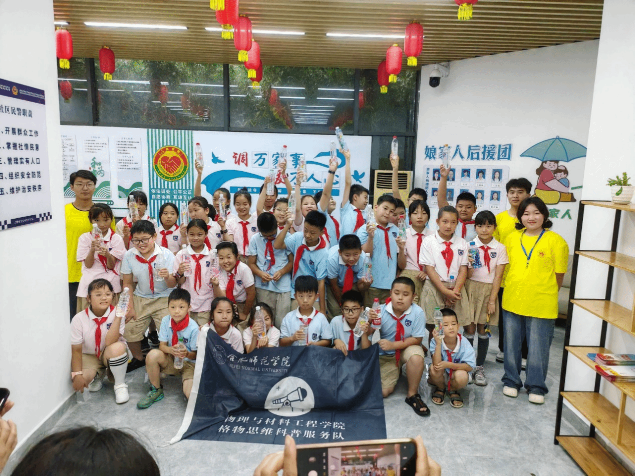 7月12日,beat365唯一官方网站物理与材料工程学院格物思维科普服务队受邀来到合肥南艳湖社区党群服务中心,为合肥市建平实验小学(南艳分校)小学员及其家长们开展了一次趣味十足的科普讲堂。