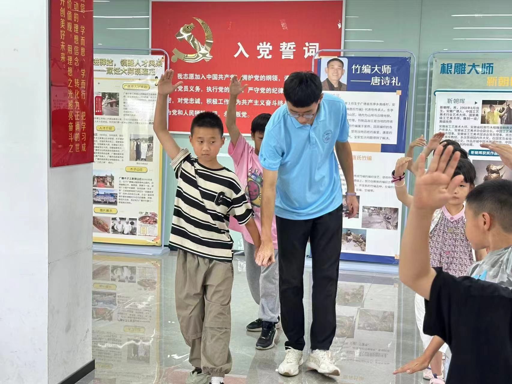 冯天蛟以刚柔并济的动作,专业的姿态,教授八段锦和太极等中国传统体育项目,课程设计注重技巧训练与体能提升,孩子们认真模仿,目光坚定,一拳一脚间,既锻炼了身体,也激发了对传统体育运动的学习热情。在“小先生”的耐心教学下,学生的动作逐渐流畅,力量、速度、耐力和灵活性得到显著提高。在汇报表演中,通过大家的共同评选,推举出了本周的“体育之星”,激励小学员们让运动成为生活的一部分,保持健康的生活方式。“炎炎夏日,我们希望孩子们不只是在室内学习,也能参与到体育活动中去,注重运动与健康生活的结合,培养运动兴趣,为小学员们打造一个充满活力和乐趣的教育环境。”冯天蛟真诚说道。