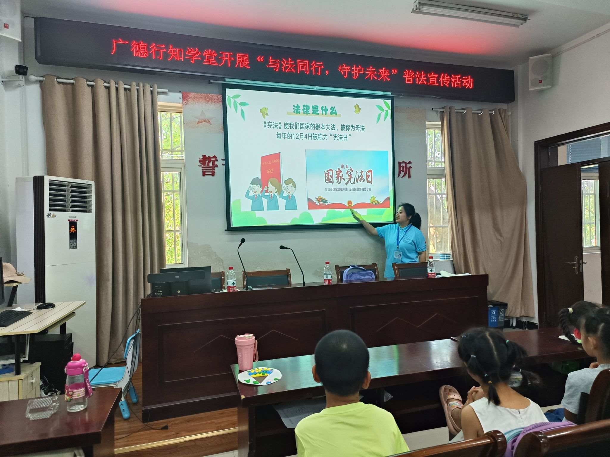 为积极响应国家普法教育号召,增强少年儿童法治观念,营造浓厚校园法治氛围,7月18日上午,广德市誓节镇行知学堂开展“与法同行,守护未来”普法宣传活动,在少年儿童心中种下法治的种子,用法治护航未成年人健康成长。