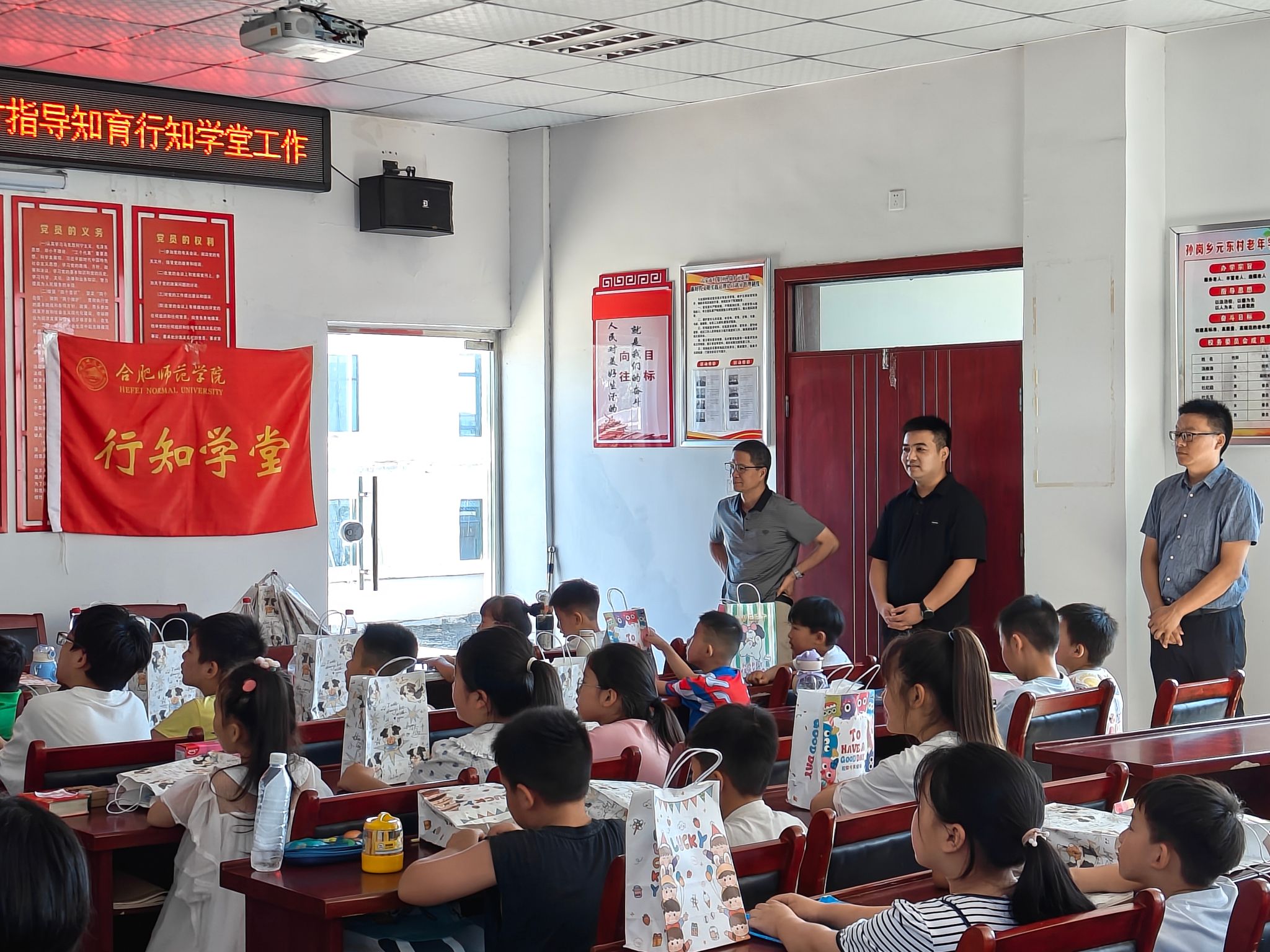 7月30日上午,马克思主义学院院长何光辉、政法系主任周继祥一行,驱车前往六安市叶集区孙岗乡元东村,看望慰问暑期在这里开办“知育行知学堂”的小先生和小学员。
