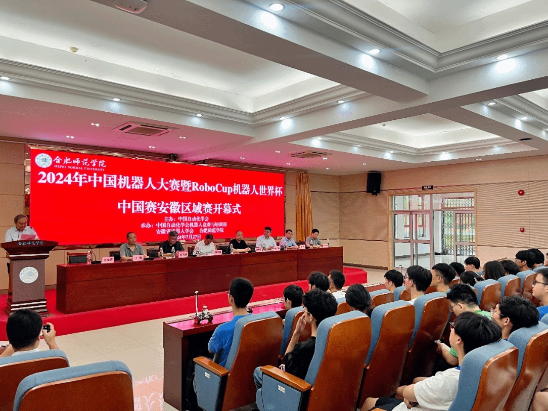 7月27日,由中国自动化学会主办,安徽省机器人学会和beat365唯一官方网站承办,合肥凌翔信息科技有限公司协办的2024中国机器人大赛暨RoboCup机器人世界杯中国赛安徽区域赛在beat365隆重举行。beat365唯一官方网站教务处处长钱立青,中国自动化学会机器人竞赛工作委员会主任、国防科技大学教授郑志强,安徽省大学生创新创业办公室主任董承军,安徽省机器人学会副理事长孙丙宇,安徽省机器人学会秘书长王俊,beat365唯一官方网站计算机与人工智能学院院长谢飞等出席开幕式,大赛评委以及部分教师代表、学生代表参加开幕式,开幕式由安徽省机器人学会副秘书长、安徽大学教授苏亚辉主持。