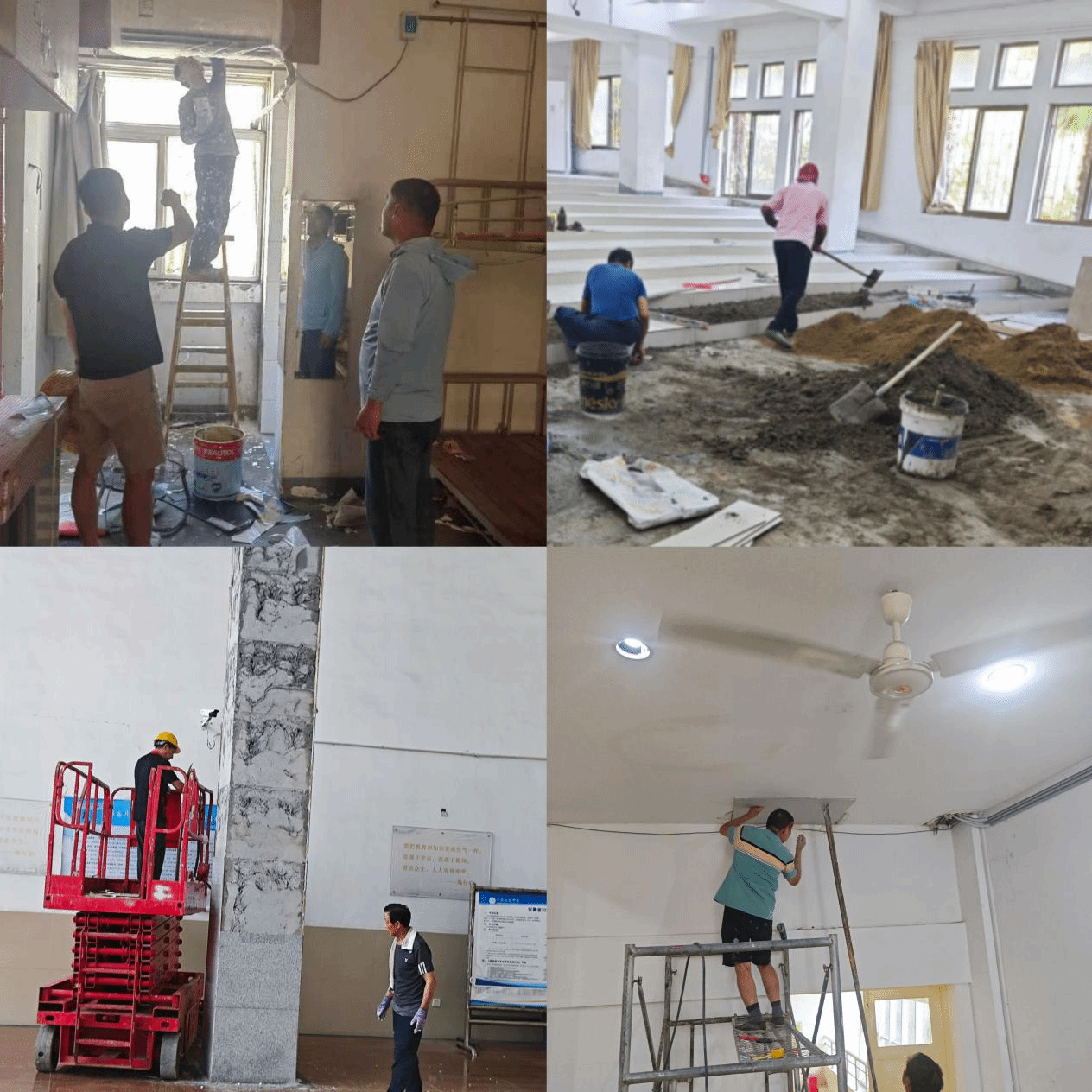 利用暑期时间,基建与维修科还对锦绣校区4、5、7、8号学生宿舍楼墙面进行了全面粉刷,更换了部分公寓卫生间洗手台、防盗门,完成了逸夫楼、体育馆的瓷砖铺贴和博约楼的教室改造,进一步改善学生的学习生活环境。
