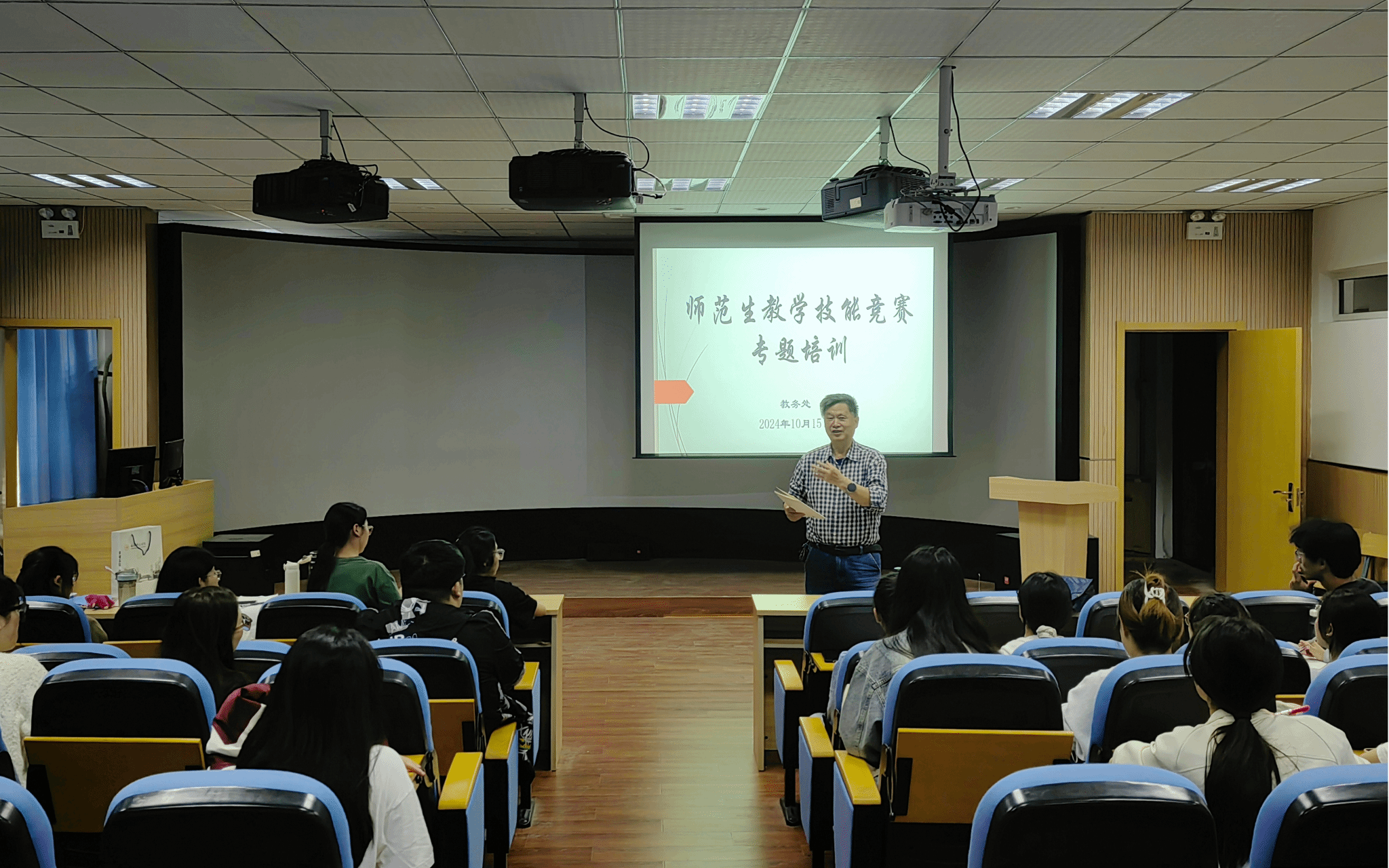 教务处邀请专家对参赛选手进行多媒体课件制作、即兴演讲、现场赛应赛技巧等多项专题培训,各位专家通过案例分析、教学技能技巧、赛事规则理解等方面对学生进行系统指导,通过培训,参赛选手的教学能力和综合素质得到了进一步提升。