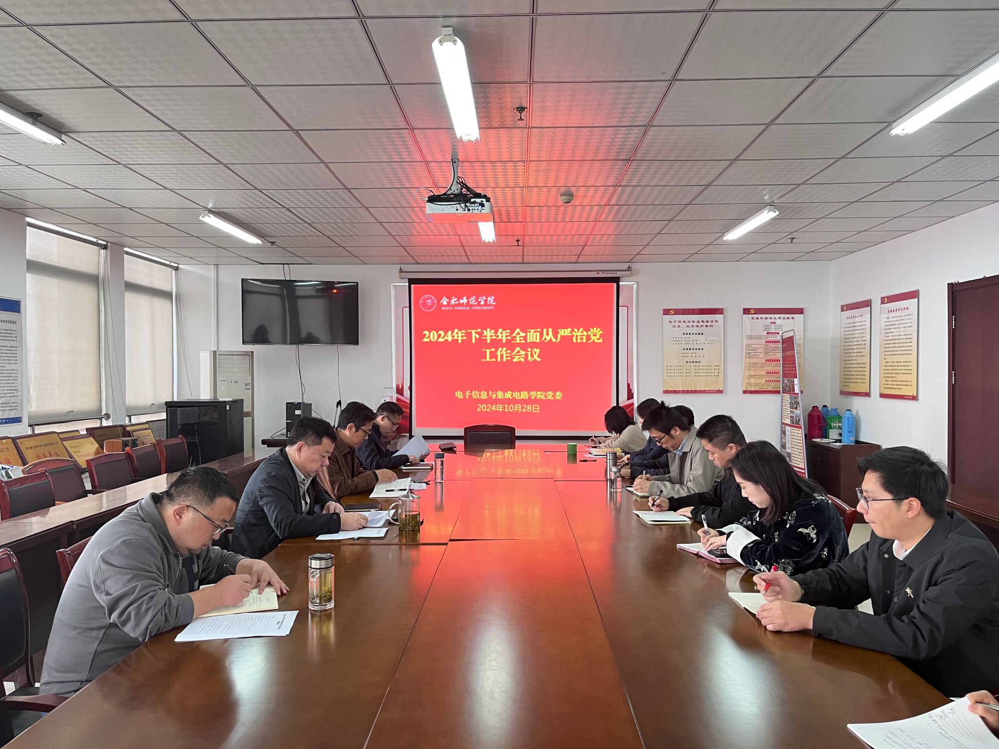 10月28日上午,根据学校党委有关工作部署,电子信息与集成电路学院党委在行知楼1210会议室以党委会扩大会议形式,专题召开学院2024年下半年全面从严治党工作会议,学院党委班子全体成员参加会议,系部主任、党政秘书、辅导员等列席会议。会议由党委书记王东明主持。