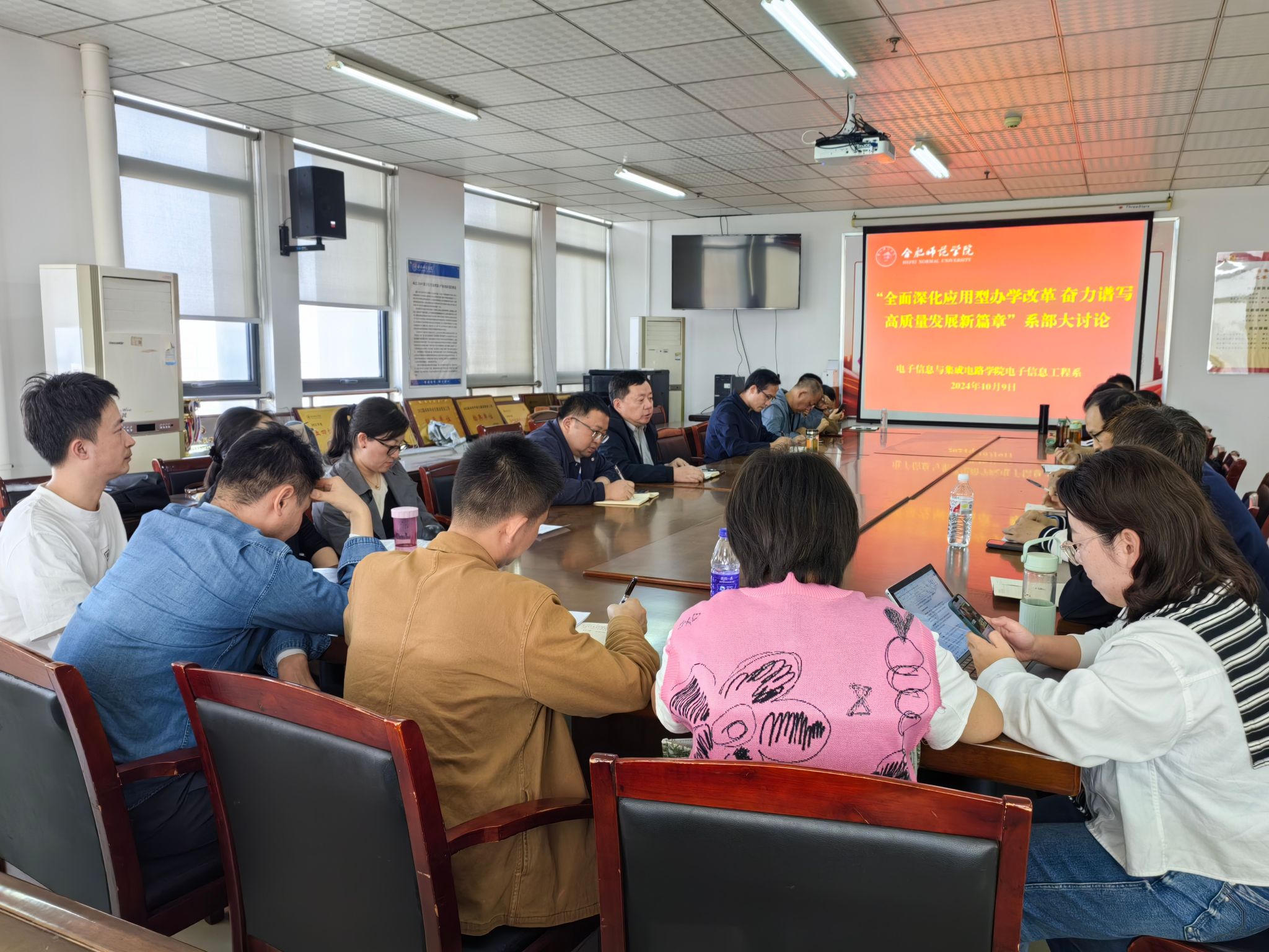 各系部组织全体教职工集体学习了全国教育大会精神,教育部、安徽省人民政府印发《推动结构优化、建设高质量高等教育体系共同行动方案》以及《beat365唯一官方网站高质量发展三年行动重点任务(2024-2026年)》等。与会人员结合所在学科专业特点和工作实际,梳理了学院在人才培养、专业建设、实验室建设、产学研合作等方面工作现状及存在的问题,聚焦省级双特学科、省级高峰学科、国家一流课程等学科专业建设工作以及硕士点建设、科研成果转化、学生科技创新竞赛、重大奖项申报等学院重点工程,提出了工作建议和有关计划。