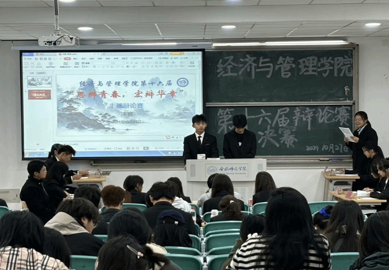 10月27日上午,由经济与管理学院举办的第十六届“思辨青春宏辩华章”主题辩论赛决赛在滨湖校区博学楼A203教室顺利举行。经济与管理学院学生会成员李想、智慧,校辩论队成员曾详锐、董祝玉应邀担任评委。