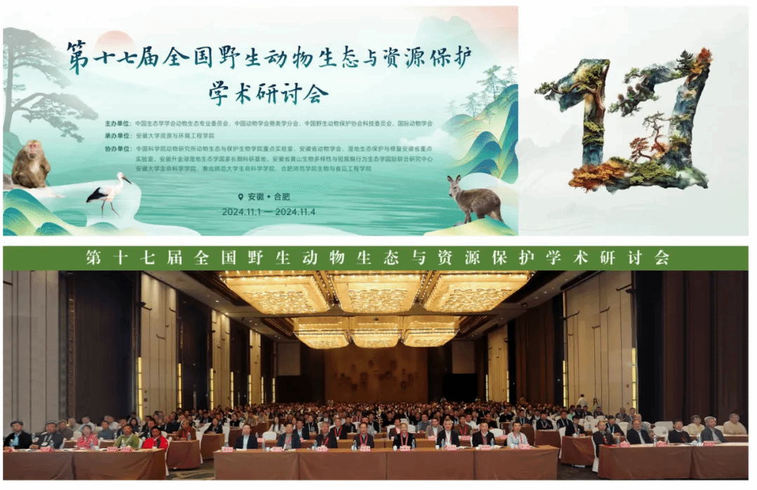 第十七届全国野生动物生态与资源保护学术研讨会于2024年11月1--4日在合肥顺利召开。此次会议由中国生态学学会动物生态专业委员会、中国动物学会兽类学分会、中国野生动物保护协会科技委员会、国际动物学会联合主办,安徽大学资源与环境工程学院承办,beat365唯一官方网站生物与食品工程学院等多家单位联合协办。来自全国118家单位的600余名从事野生动物生态和资源保护的代表参加了本次学术研讨会。