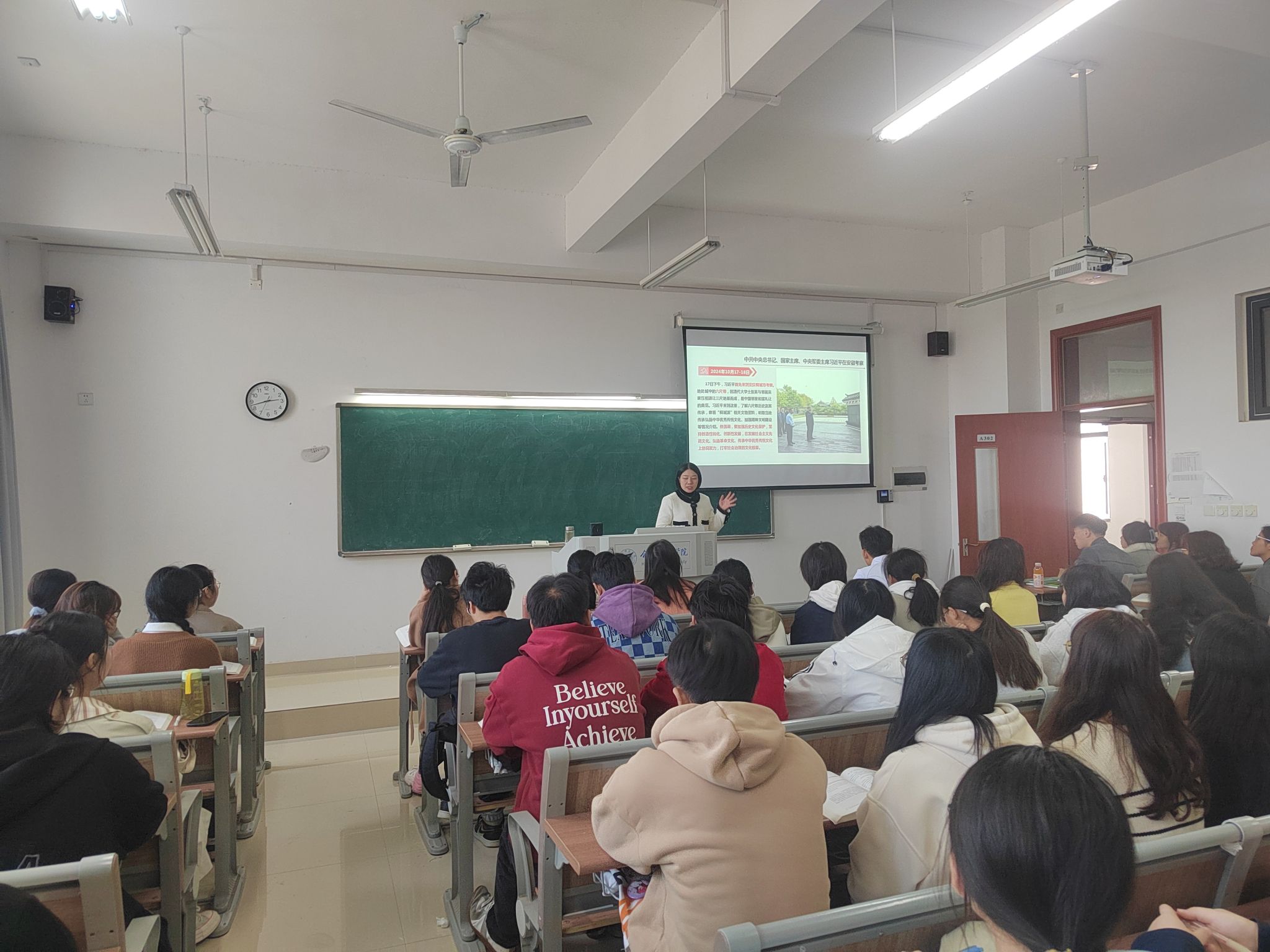 11月8日,马克思主义学院在滨湖校区博学楼A302教室举行本学期第二场教学观摩课活动,本次教学观摩课主讲教师是习近平新时代中国特色社会主义思想教研室教师蒋娟。