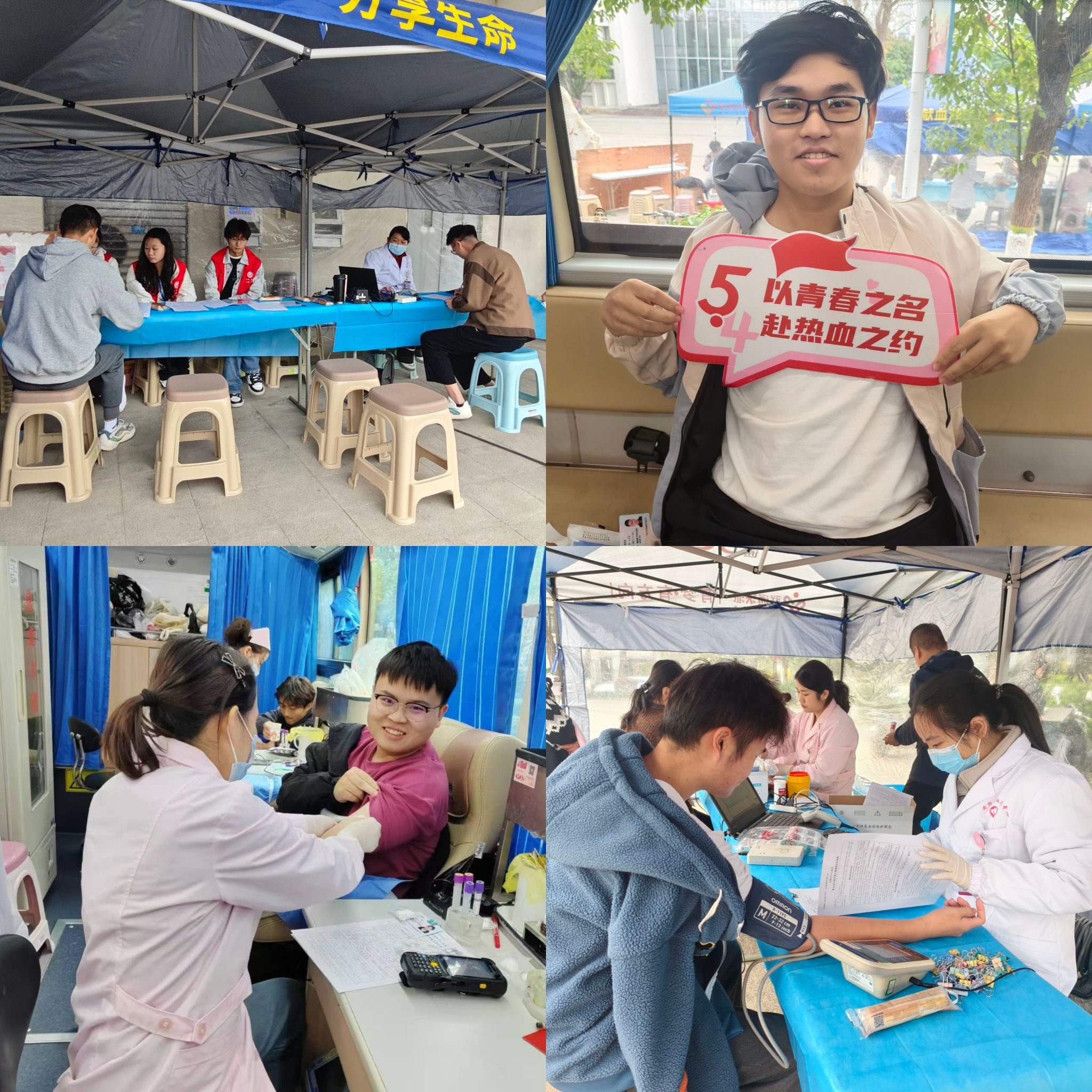 11月18日至22日,我院青年志愿者联合会(以下简称“青志联”)联合安徽省血液中心、合肥市中心血站于锦绣校区逸夫楼前广场与滨湖校区桂园餐厅前广场开展“我为祖国献热血”无偿献血志愿服务活动,旨在激励青年学生关注社会需求,培养志愿精神。截至活动结束,共计373人参与无偿献血,累计献血102540毫升。