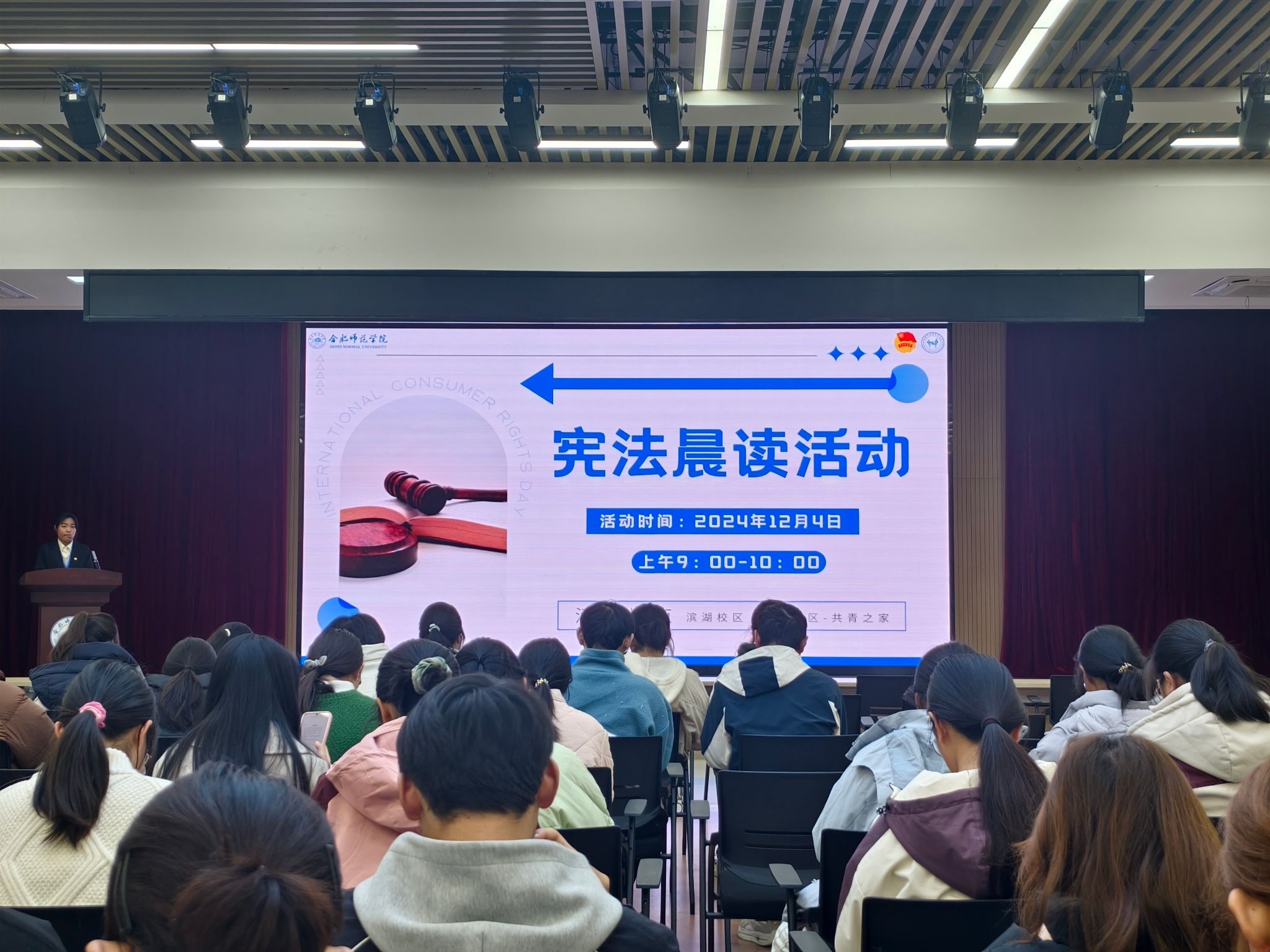 12月4日上午,院学生会于滨湖校区博学楼D101与锦绣校区共青之家带领同学们开展“宪法晨读”活动、观看教育部全国青少年普法网直播。随后,马克思主义学生会在现场举办案例分享会。同学们在活动后表示:今年“宪法宣传周”活动内容丰富,营造了“尊法、学法、守法、用法”的浓厚氛围,参与其中收获颇丰。