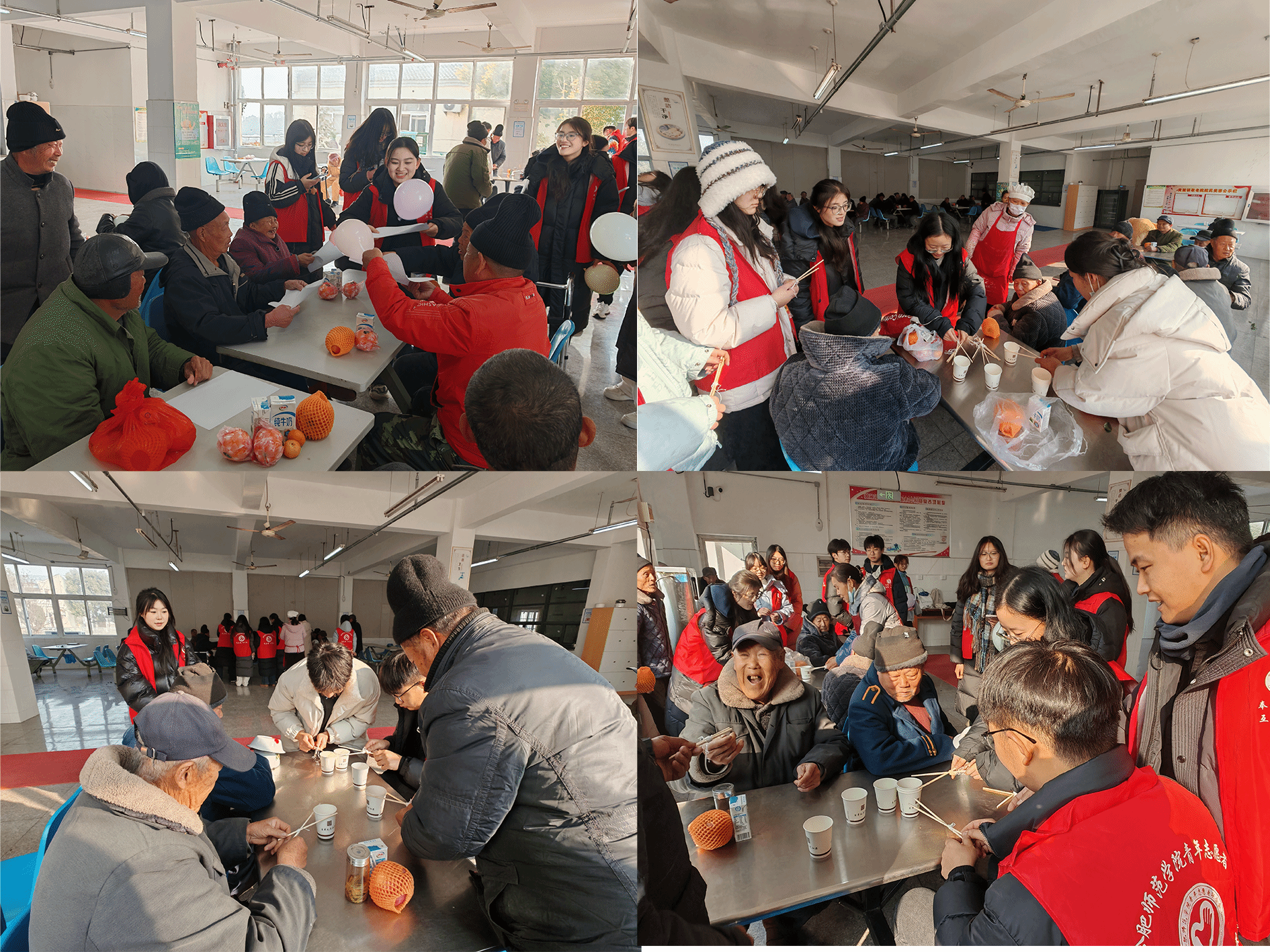 为增强青年大学生的社会责任感和志愿服务精神,在生动的社会实践中践行青年的时代担当,12月21日,由文学院团委、学生第三党支部共同发起的“花撷晚晴”志愿服务队赴巢湖市黄麓镇敬老院开展“暖心助老”志愿服务活动,文学院团委书记李惠恩、党支部书记王明蕾,学生第三党支部党员、入党积极分子以及青年志愿者20余人参与活动。
