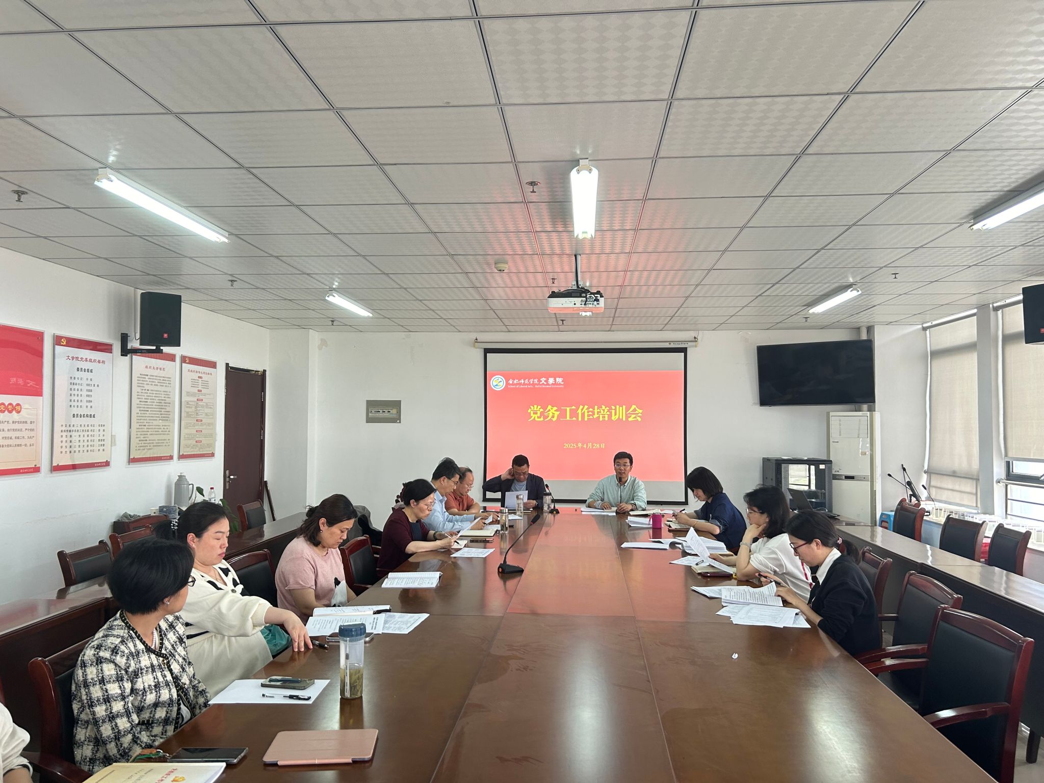 为进一步提高学院党务工作规范化水平,提升党建工作质量,2025年4月28日下午,文学院在行知楼802召开党务工作专题培训会,党委班子成员、党支部书记、委员、党委秘书和组织员参加,院党委书记许锃作专题培训讲解。