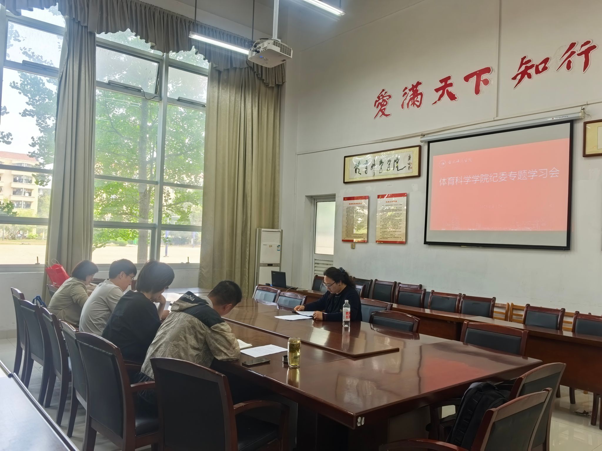 4月29日上午,体育科学学院纪委在锦绣校区体育馆会议室召开专题学习会,全体纪委委员参会,会议由学院党委副书记、纪委书记马飞艳主持。