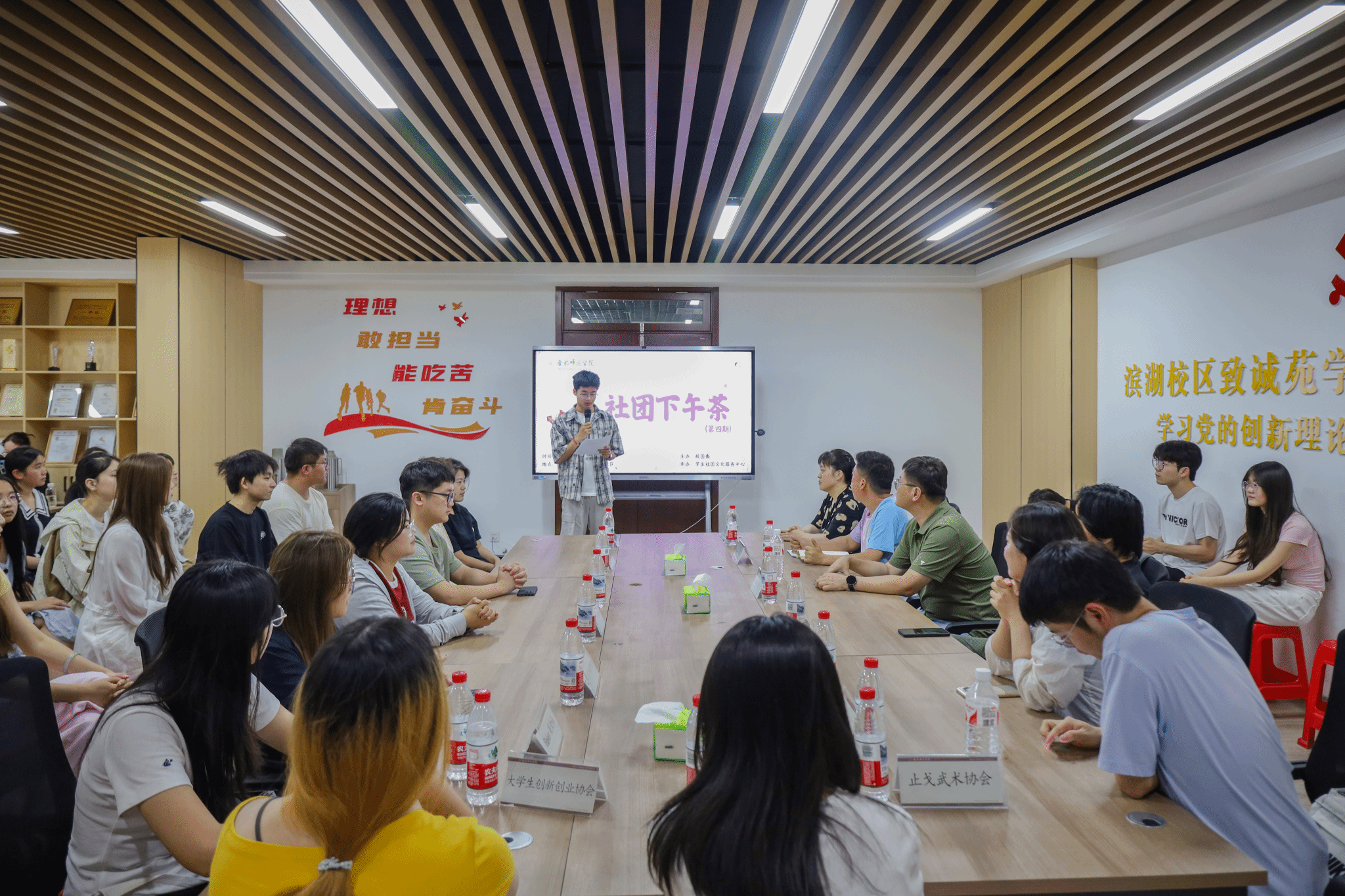 为进一步丰富社团活动,优化社团未来发展,5月14日下午,由院团委主办、学生社团文化服务中心承办的第四期“社团下午茶”活动在滨湖校区1号楼公寓一站式社区举办。院团委书记刁文彬、院团委姚瑶、魏晓倩、钟树旺,大学生书画协会及行之琴社指导老师桂晓亮、文记赏馨曲艺社指导老师王志以及学生社团代表参加活动,围绕社团建设展开交流与风采展示。