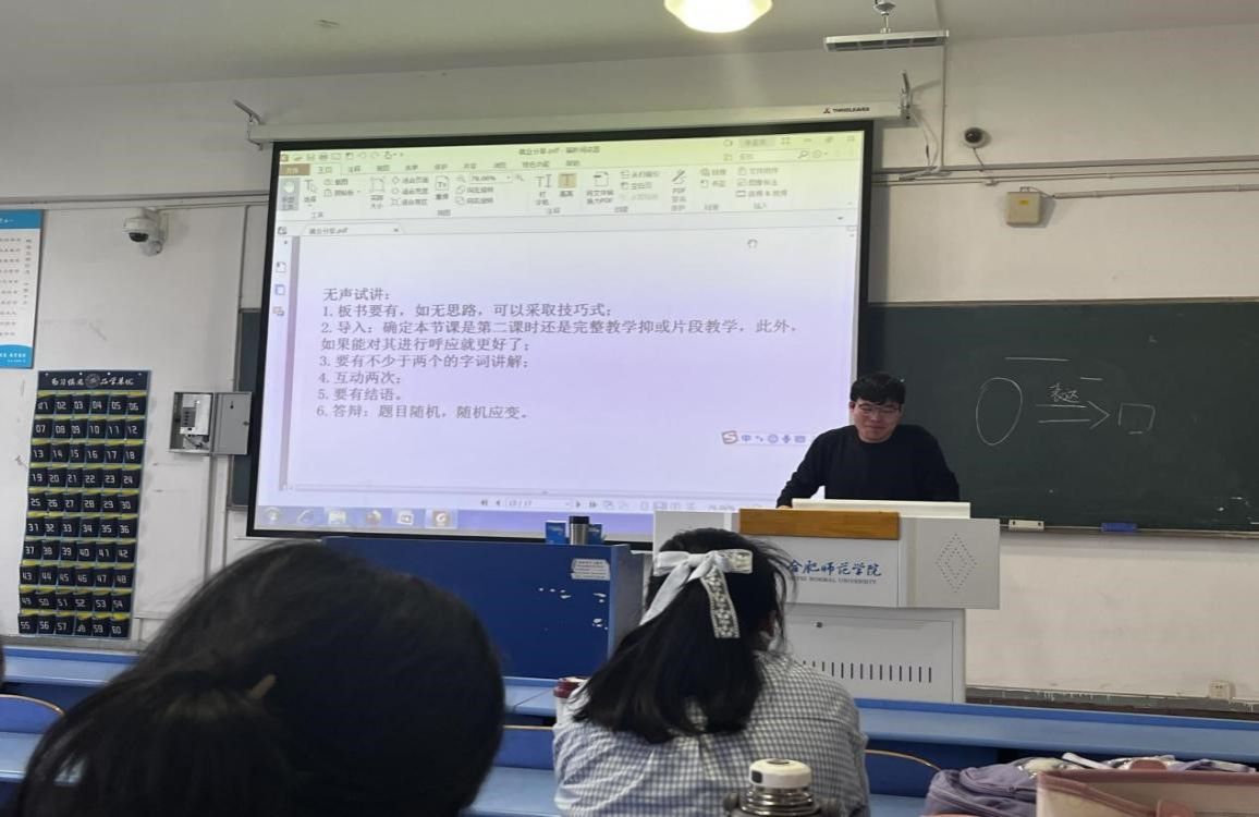 作为文学院历史上首位斩获全国“田家炳杯”教育硕士教学技能大赛一等奖的学生,陈曦以“从校赛到国赛:一场教学技能的蜕变之旅”为题,分享了2023年参赛的实战经验。她回顾了从选题打磨、教学设计到现场授课的全过程,强调“细节决定成败”:“一堂10分钟的微课,我修改了27版教案,录了50多次模拟视频,连手势和眼神都反复推敲。”她还结合评委反馈,总结了“紧扣新课标理念”、“巧用情境化教学”、“强化师生互动生成”三大核心技巧,鼓励学弟学妹:“比赛不仅是竞技场,更是突破自我的成长阶梯。”
