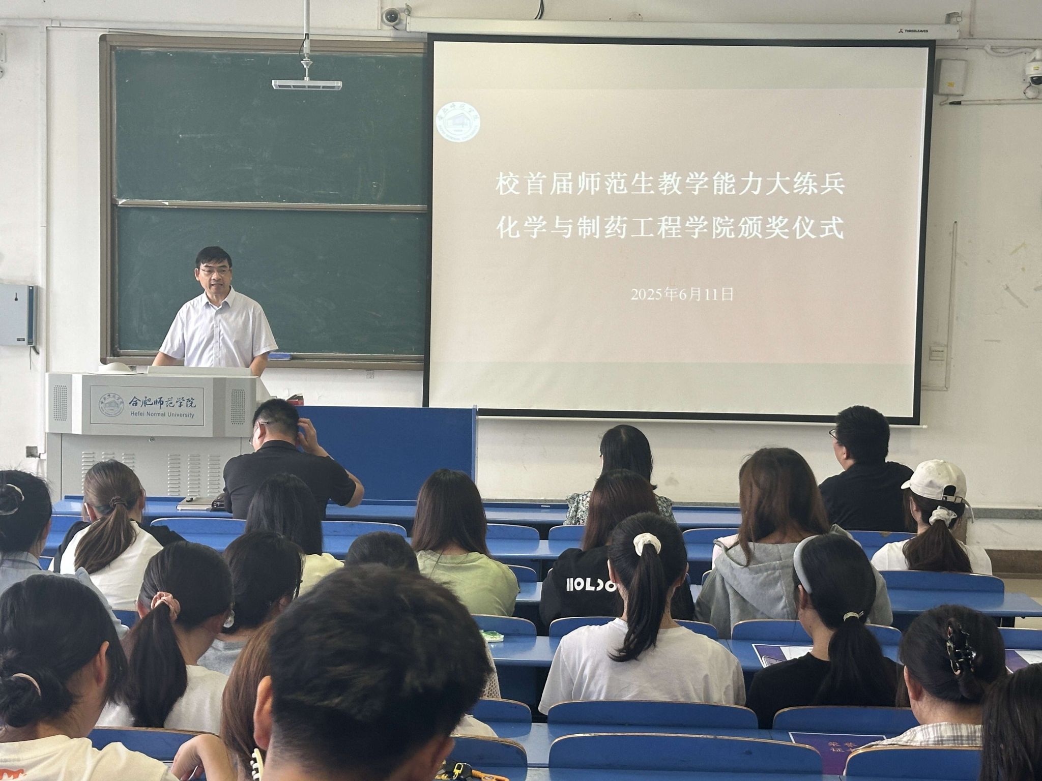 为表彰在校级首届师范生教学能力大练兵比赛中表现优异的学子,6月11日,化学与制药工程学院举办专题表彰活动。副院长董雄辎、化学教育系主任凌波及学科教学论教师方璐、王伟出席颁奖仪式。