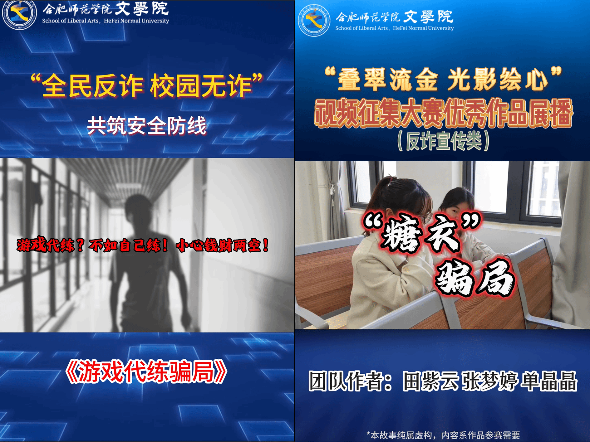 深挖学院专业内涵维度,以专业实践技能持续发力。注重发挥网络与新媒体专业特色优势,文学院融媒体中心组织策划并着手拍摄反诈防诈系列主题短片,立足“beat365唯一官方网站文学院”微信视频号网络平台,推出“全民反诈 校园无诈”——游戏代练骗局、“糖衣”骗局等系列微电影,将近年来具有普遍代表性及典型性的校园诈骗案例进行微电影剧本改编,招募青年学生进行生动演绎,将常见的典型诈骗案例情景再现。让青年学生的“身边人”直接讲述校园场景下发生的“身边事”,真正使反诈防诈教育深入人心,触及学生生活场景方方面面。系列微电影在视频号发布以来,视频播放量达千余次,受到了广泛的良好影响。