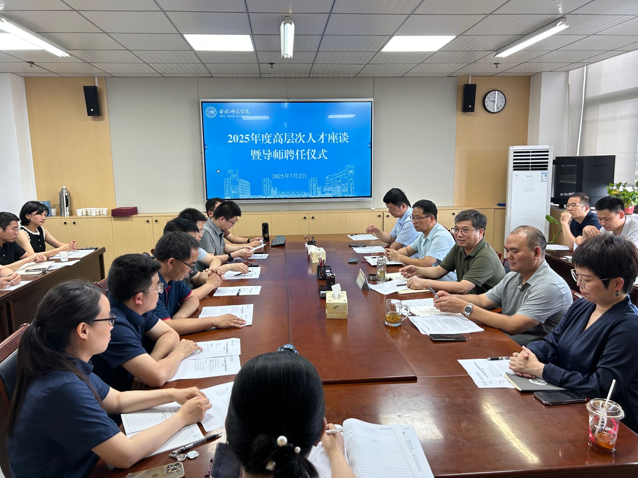 7月2日上午,学校高层次人才座谈暨导师聘任仪式在锦绣校区行知楼408会议室召开。党委委员、副校长华银峰出席会议并讲话,高层次人才导师和近三年新进高层次人才代表参加会议。会议由党委教师工作部部长、人事处处长吴长龙主持。