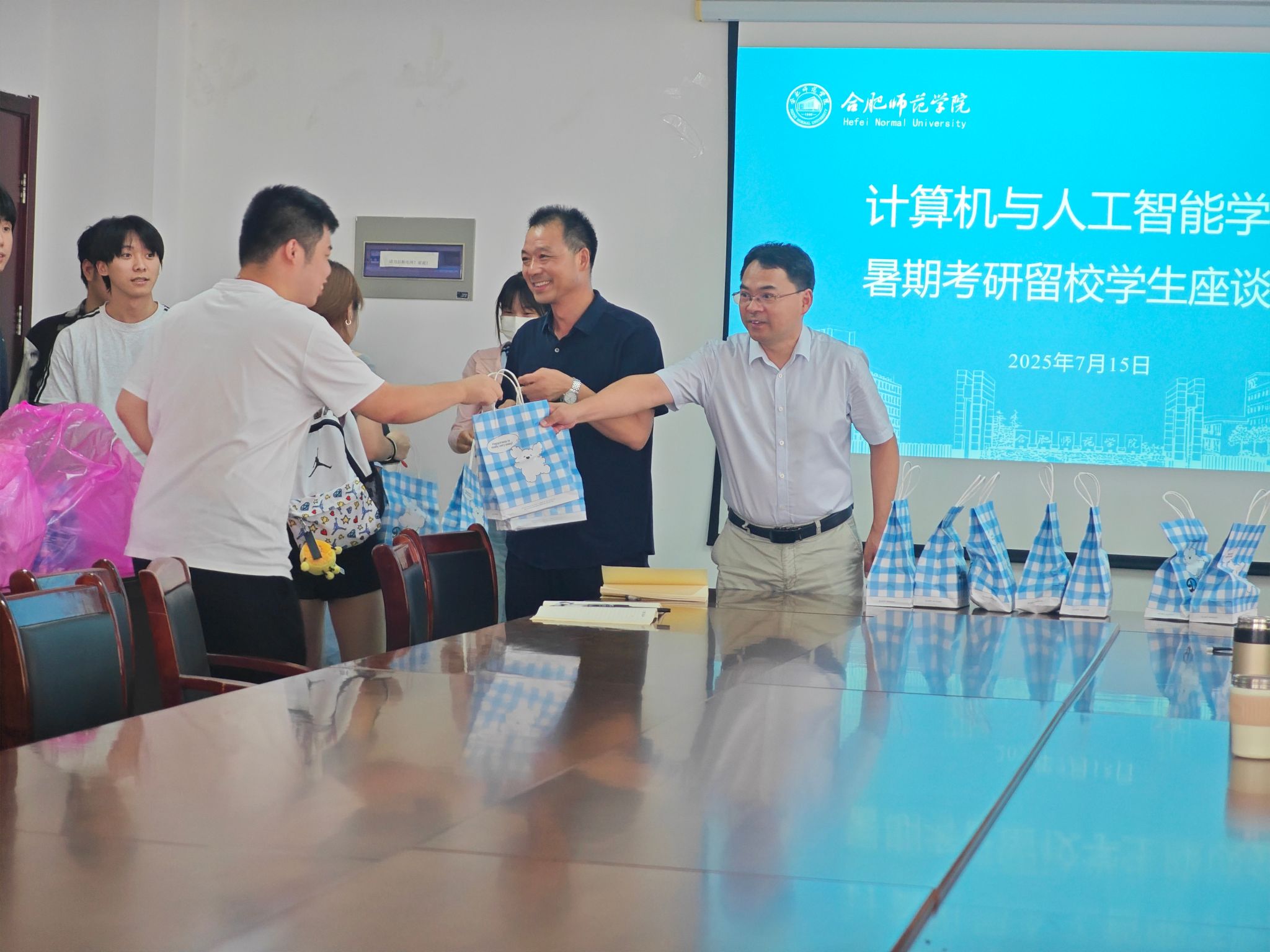会后,学院领导给留校考研的学生分发了暑期慰问品。此次座谈会的召开,进一步拉近了学院与考研学生的距离,为精准解决学生备考难题、优化考研服务体系奠定了坚实基础,也让留校考研学生感受到了学院的关怀与支持,为他们接下来的备考之路注入了信心与动力。(计算机与人工智能学院:文/夏芳、刘家瑜,图/陶江铖)