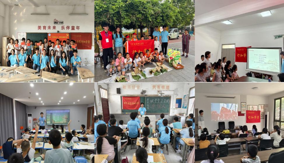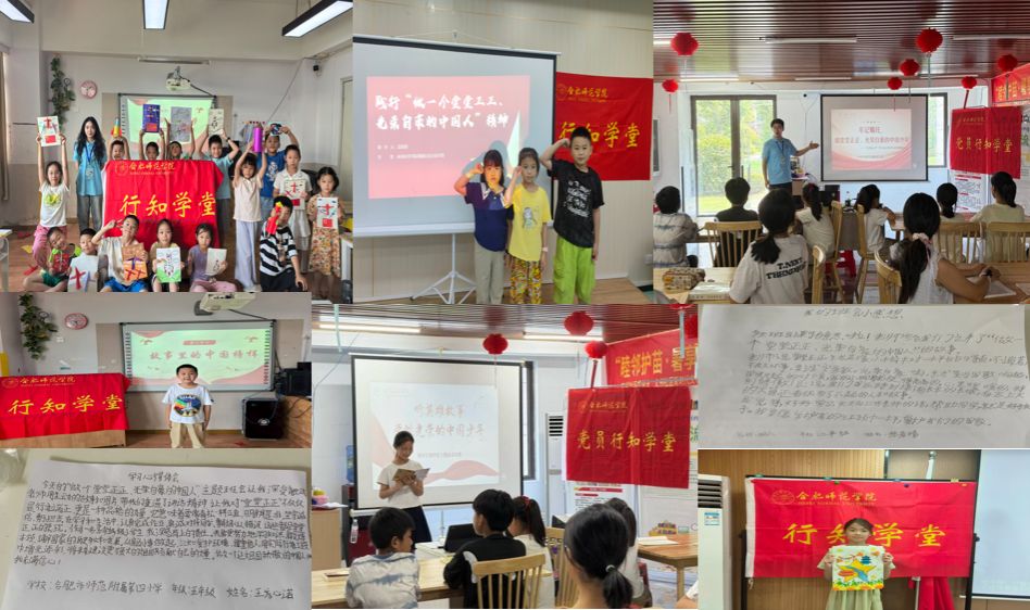 宣州朱桥行知学堂、颍阳行知学堂、涡阳刘竹行知学堂通过学堂广播播放英雄事迹、宣传栏展示中国发展成就等形式,用一个个生动鲜活的案例、一幅幅震撼人心的画面,展现祖国辉煌成就,增强了学员民族自豪感和自信心。“我看到爱国主义的种子正在幼小心灵中生根发芽”经济与管理学院2023级人力资源管理专业陈孝来动情地说道。小学员储子茗:“我问老师‘为什么以前要凭粮票买东西’,通过老师的讲解,我仿佛坐上了时光机,看见爷爷奶奶那辈人排队买米的场景。而现在,我的电话手表就能付款,这些变化让我知道‘幸福是奋斗出来的’不是口号,我要把学的知识讲给更多小朋友听!”