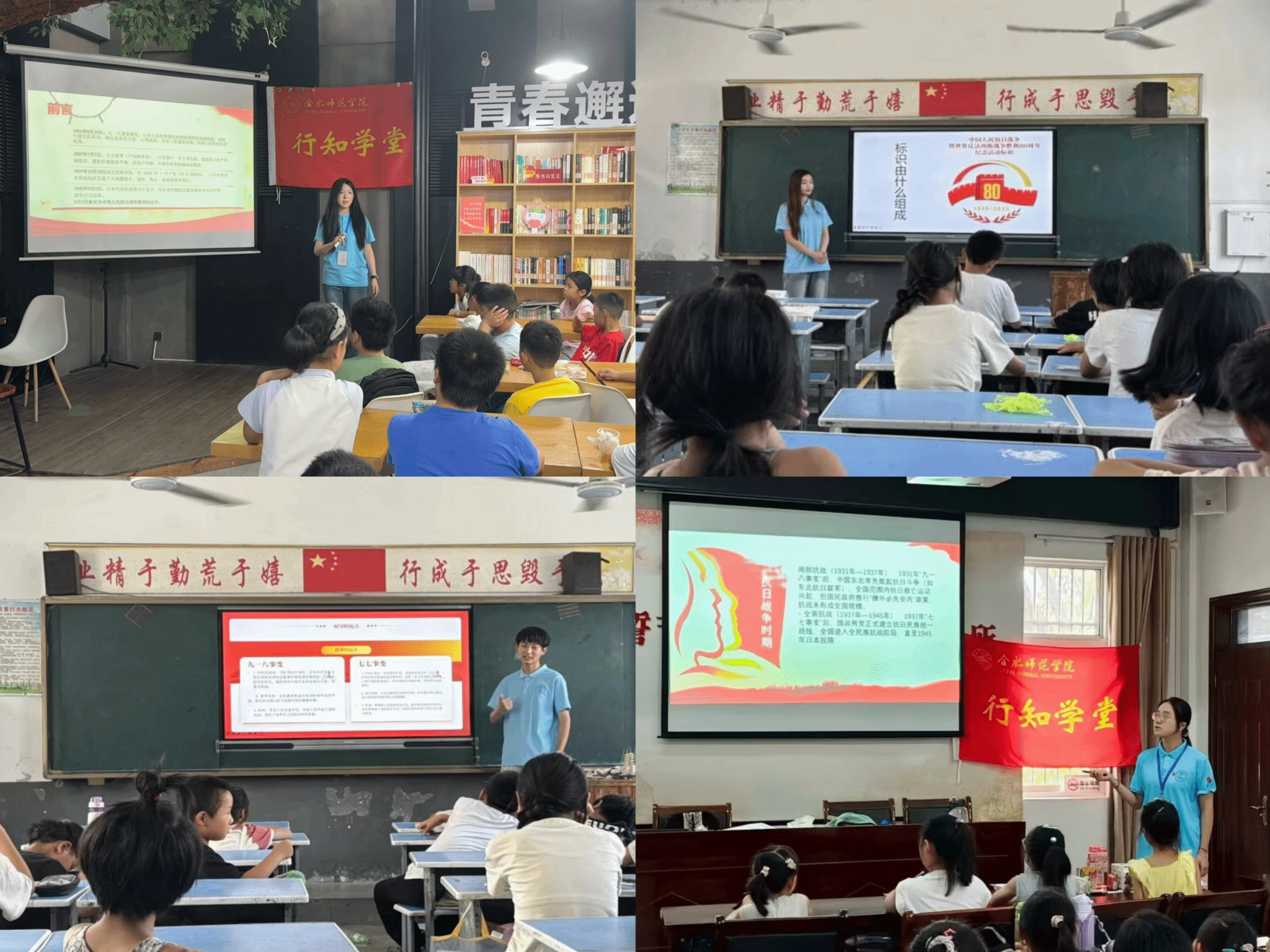 “每一个抗战故事都是一面精神旗帜,每一位英雄都值得我们永远铭记。”团员示范行知学堂——广德行知学堂 “小先生”吴思彤正在开展“抗战精神永传承”主题宣讲活动,她带领小学员们回溯抗日战争历史关键坐标:1931年九一八事变点燃局部抗战烽火,1937年“七七事变”揭开全民族抗战序幕,至1945年日本投降,清晰勾勒出14年浴血奋战取得抗战胜利的历程。课程结束后,全体“小先生”和小学员以“奋斗新征程”寄语:立志向、勤学习、善团结、勇克难,将抗战精神融入日常,成长为担当青年,让和平之光永续。