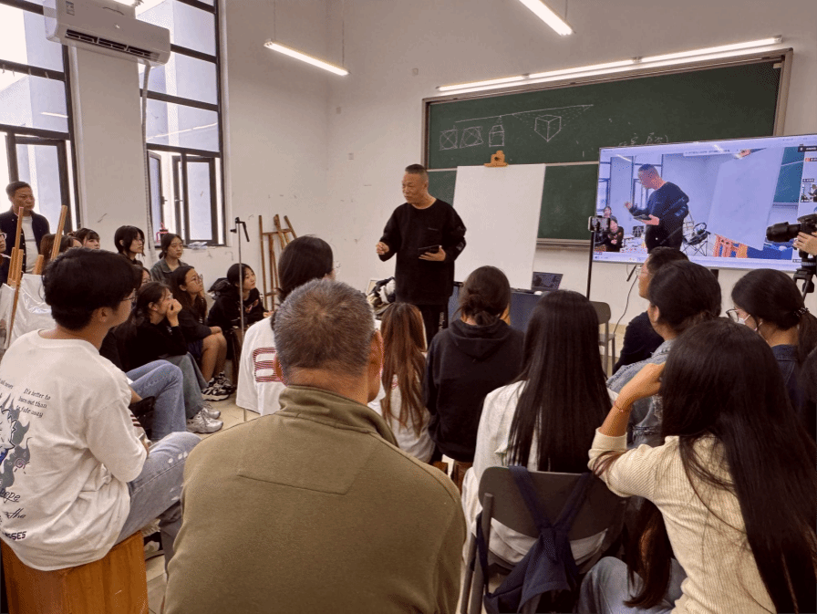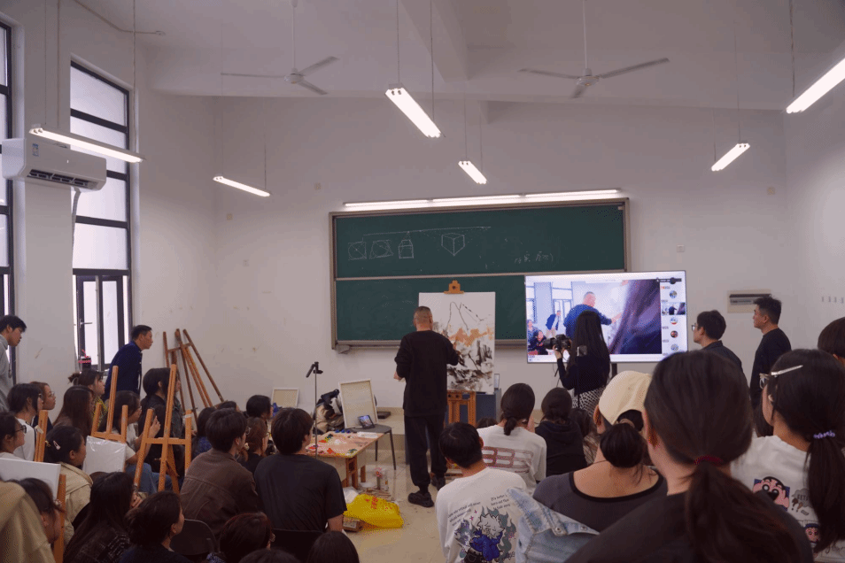 秋意渐浓,滨湖校区美术与设计学院的画室内却暖意融融,洋溢着专注而热烈的艺术气息。9月25日下午,继上午的专题学术讲座后,杰出校友李成民教授在此开展了一场独具特色的风景油画现场示范。本次活动将创作现场置于画室之内,旨在如何将自然界的广阔气象,提炼重构于方寸画布之上。