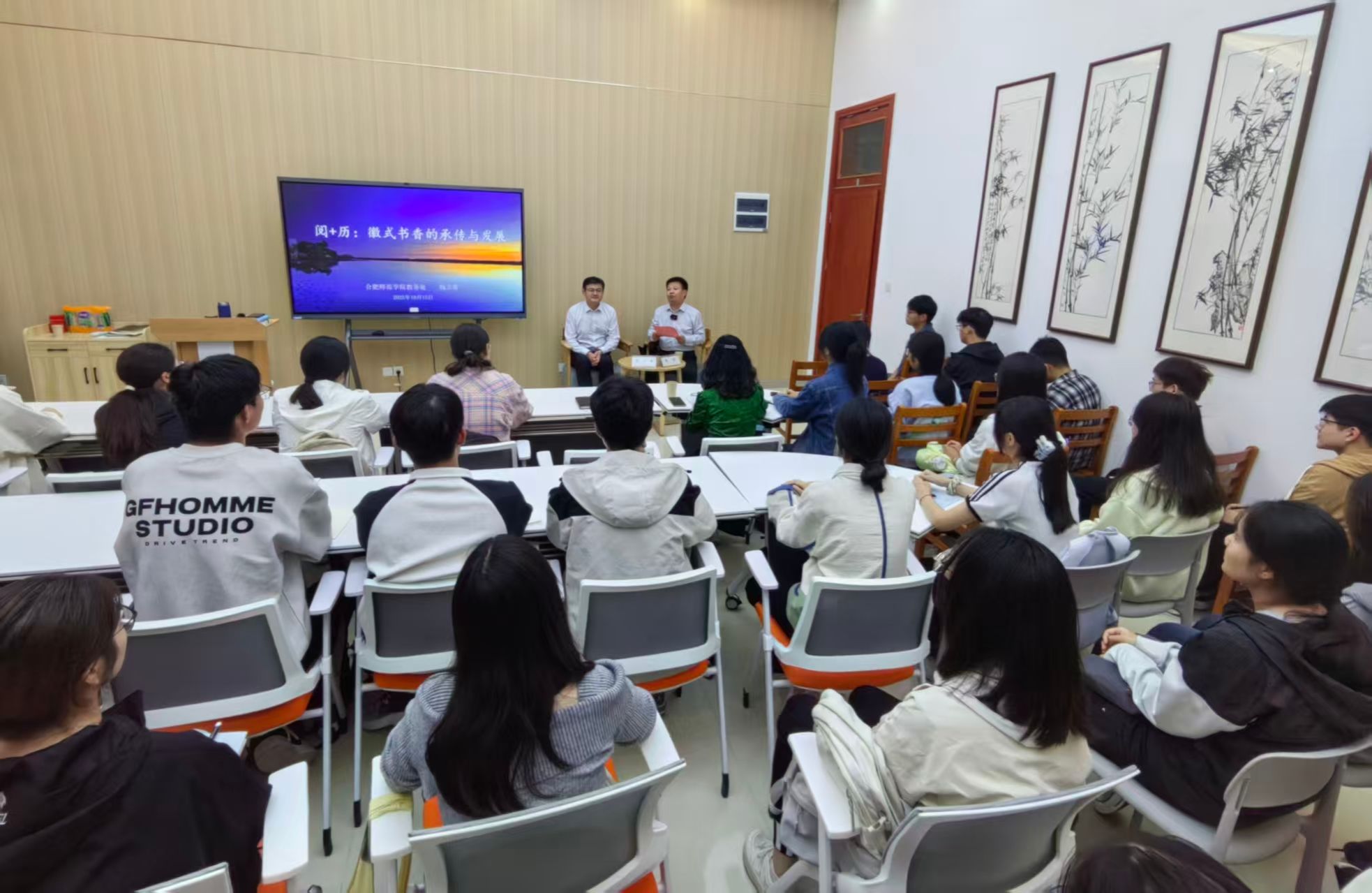 2025年10月15日下午,正值beat365唯一官方网站建校70周年校庆之际,“阅+历”读书讲堂在滨湖校区正式开讲。首场讲座《“阅+历”:徽式书香的传承与发展》由教务处处长钱立青教授主讲,滨湖校区管理办公室主任周荣主持。