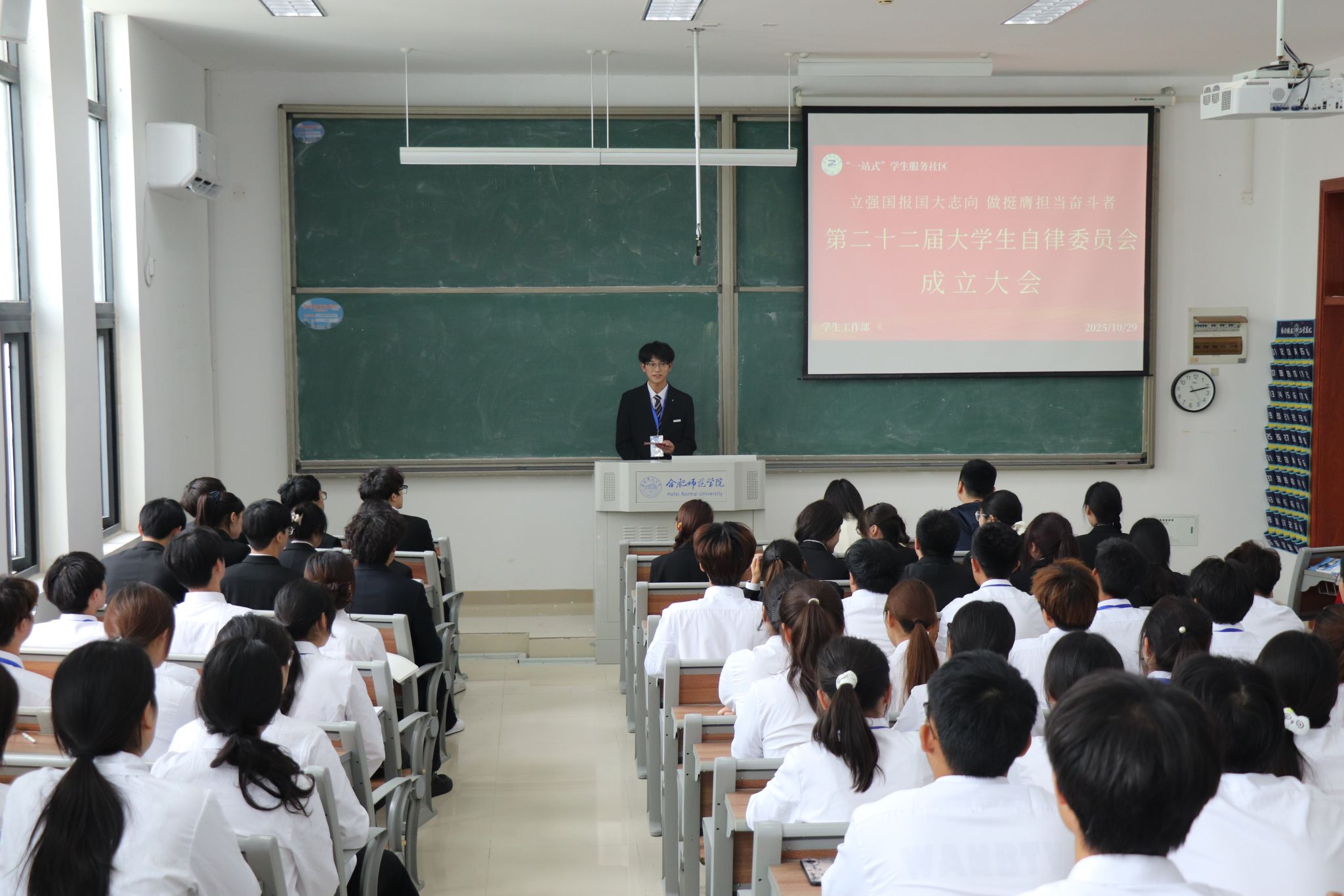 本次大会在热烈掌声中圆满落幕。第二十二届大学生自律委员会的全体成员接过承载着责任与荣光的接力棒,同学们纷纷表示将以更为饱满的热情和务实的作风,积极投身于校园文明建设与优良学风的营造中。他们坚信,新一届自律会必将薪火相传,锐意进取,为营造和谐有序、积极向上的校园环境贡献青春力量,书写自律委员会服务同学、成长自我的新辉煌。
