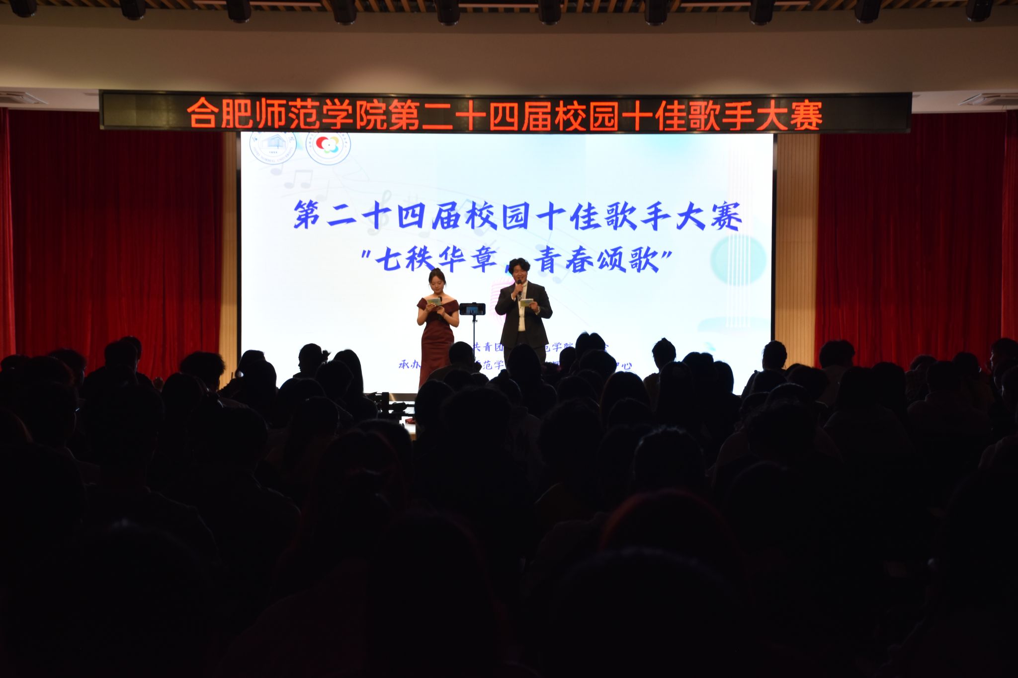 11月12日晚,由院团委主办、学生社团文化服务中心承办的“七秩华章,青春颂歌”第二十四届校园歌手大赛决赛于锦绣校区大学生活动中心圆满落幕。300余名学生现场观看,4000余人线上通过“合师青年”公众号观看直播。