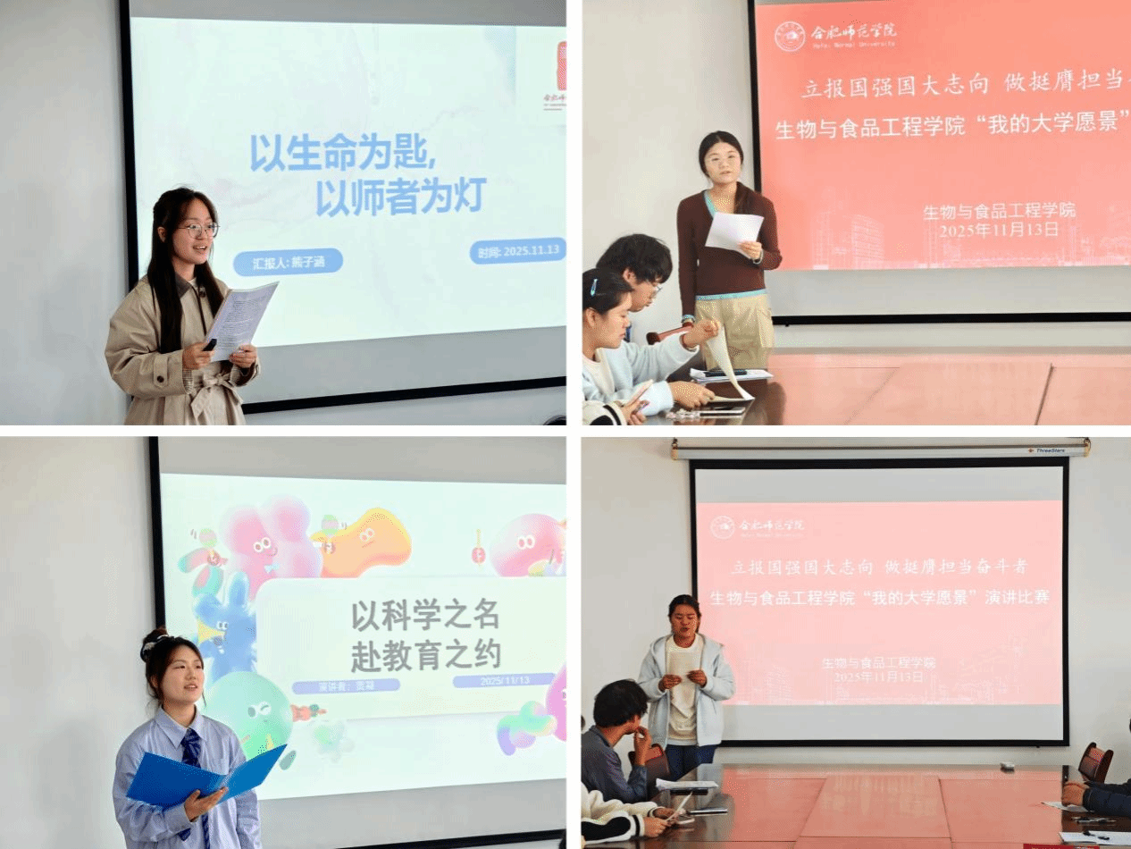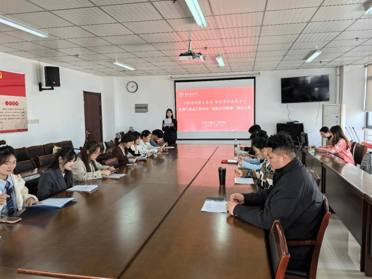 11月13日,生物与食品工程学院以“立报国强国大志向,做挺膺担当奋斗者”为主题的“我的大学愿景”演讲比赛在行知楼1502会议室顺利举行。本次比赛旨在引导学生树立远大志向,增强自我认知能力,科学规划个人发展路径,进一步营造优良学风,助力学子以更加饱满的姿态开启精彩大学生活。