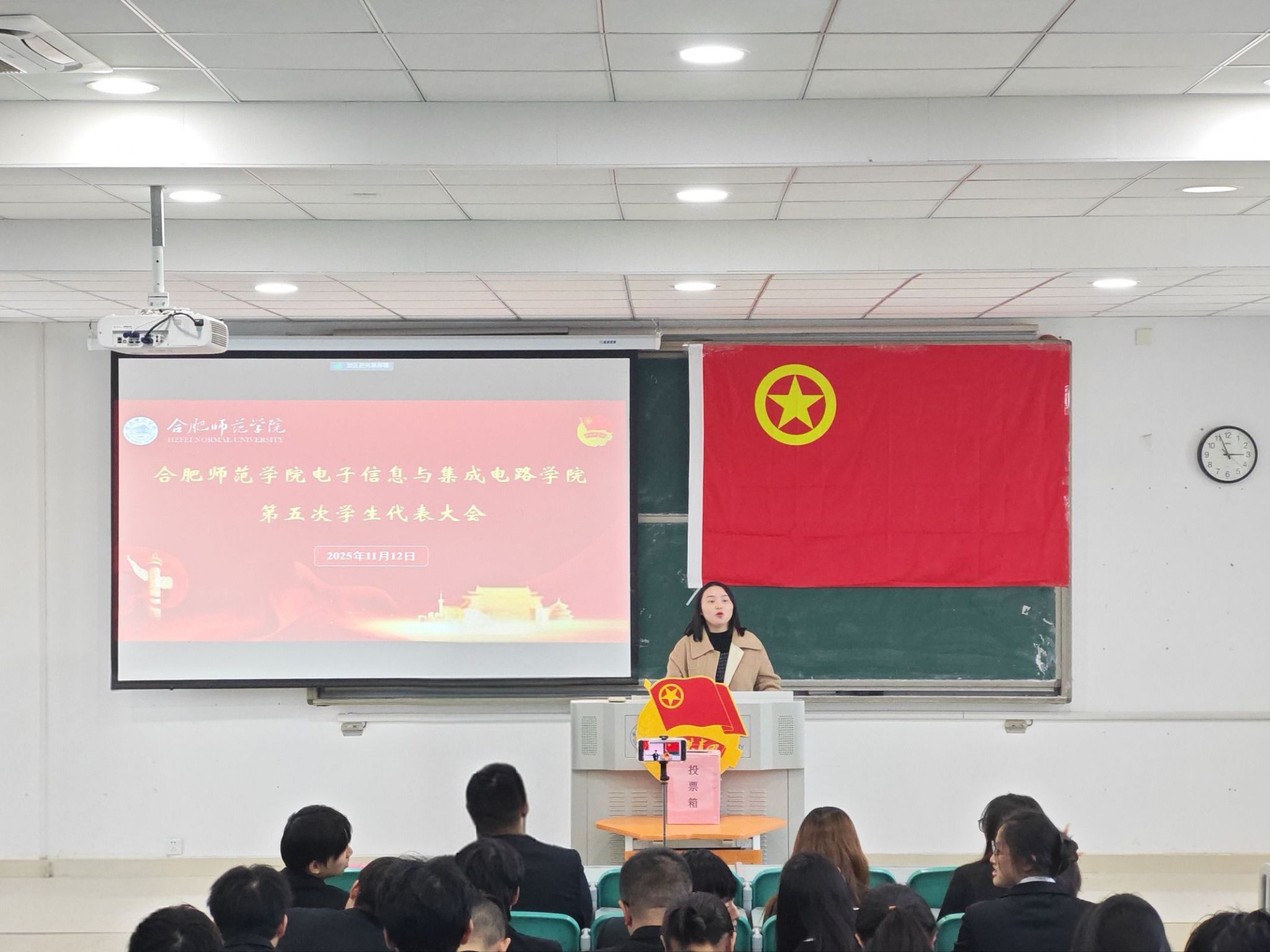 11月12日下午,电子信息与集成电路学院第五次学生代表大会顺利举行。本次大会采取了两校区同步、实时网络直播方式,主会场设在滨湖校区博学楼A203,分会场设在锦绣校区逸夫楼A202。电子信息与集成电路学院党委副书记周贵勤、分团委书记江淼以及学院各年级学生代表共计120余人参加大会。