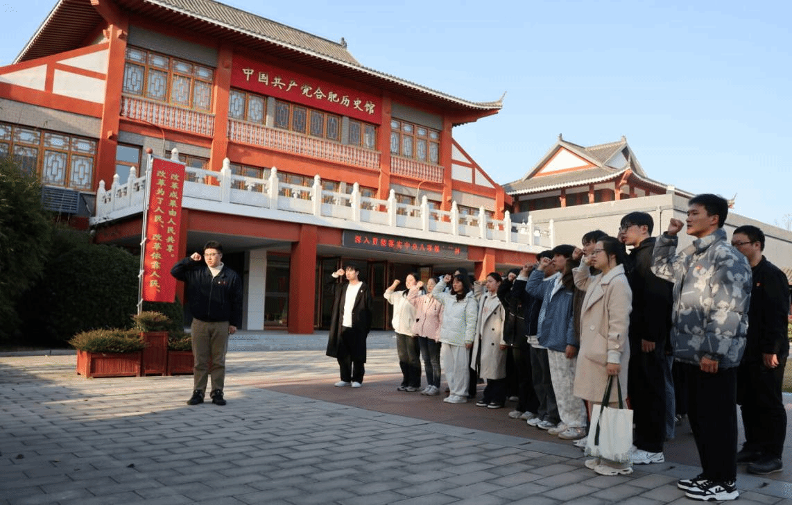 在中国共产党合肥历史馆内,新发展党员们在讲解员的引导下,认真观看了各个历史时期的珍贵史料和实物展陈,系统学习了合肥地区共产党人艰苦卓绝的奋斗历程和取得的辉煌成就。面对鲜红党旗,全体党员庄严宣誓,铿锵有力的誓言在展馆内回荡,表达了为共产主义事业奋斗终身的坚定决心。