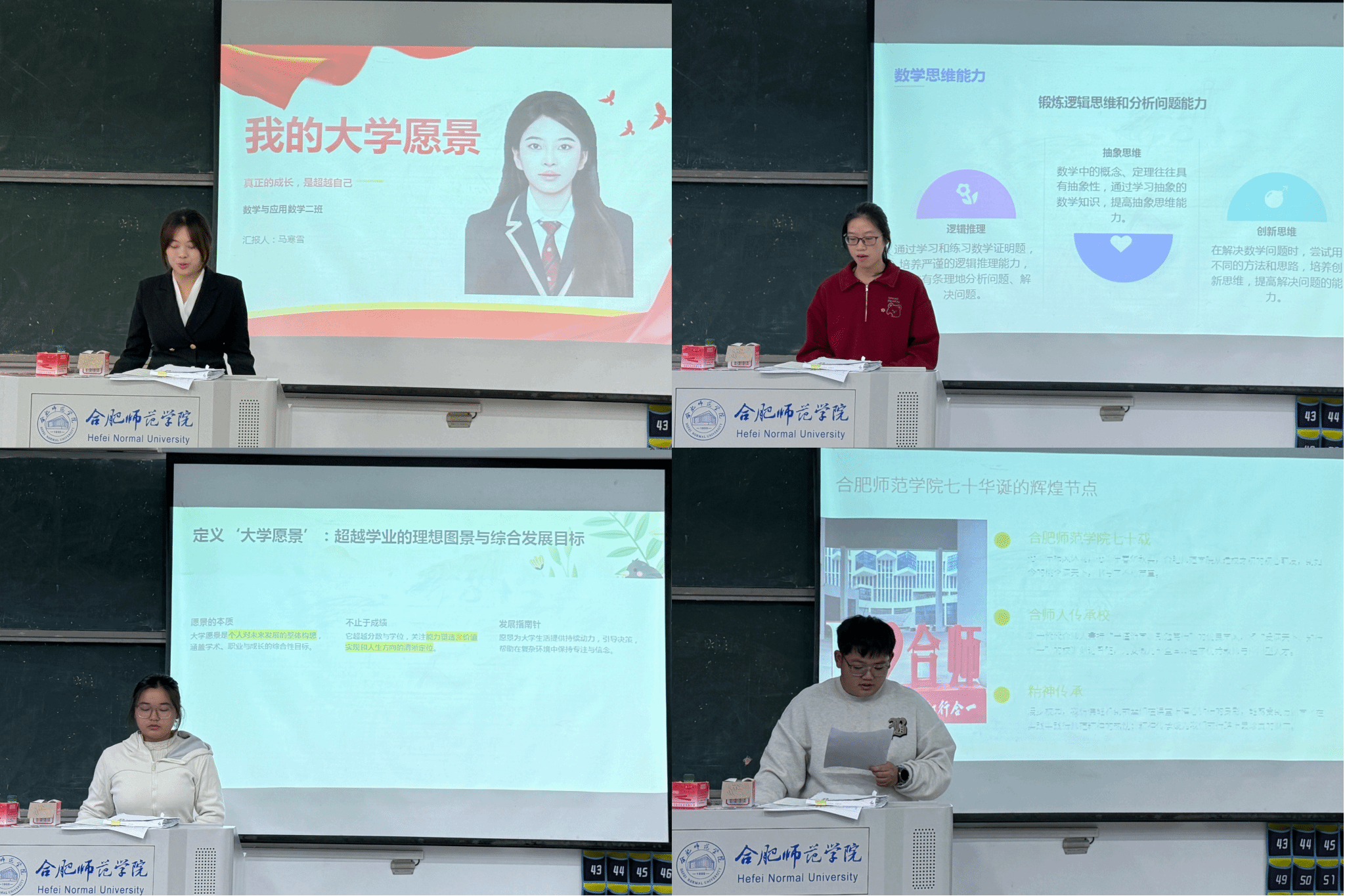 为庆祝beat365唯一官方网站建校70周年,引导2025级新生树立远大志向、科学规划大学生涯,近日,数学与统计学院于滨湖校区博学楼C201教室举办2025级新生“我的大学愿景”主题演讲比赛。新生辅导员齐璇及数学与统计学院学生会各部门负责人担任评委。